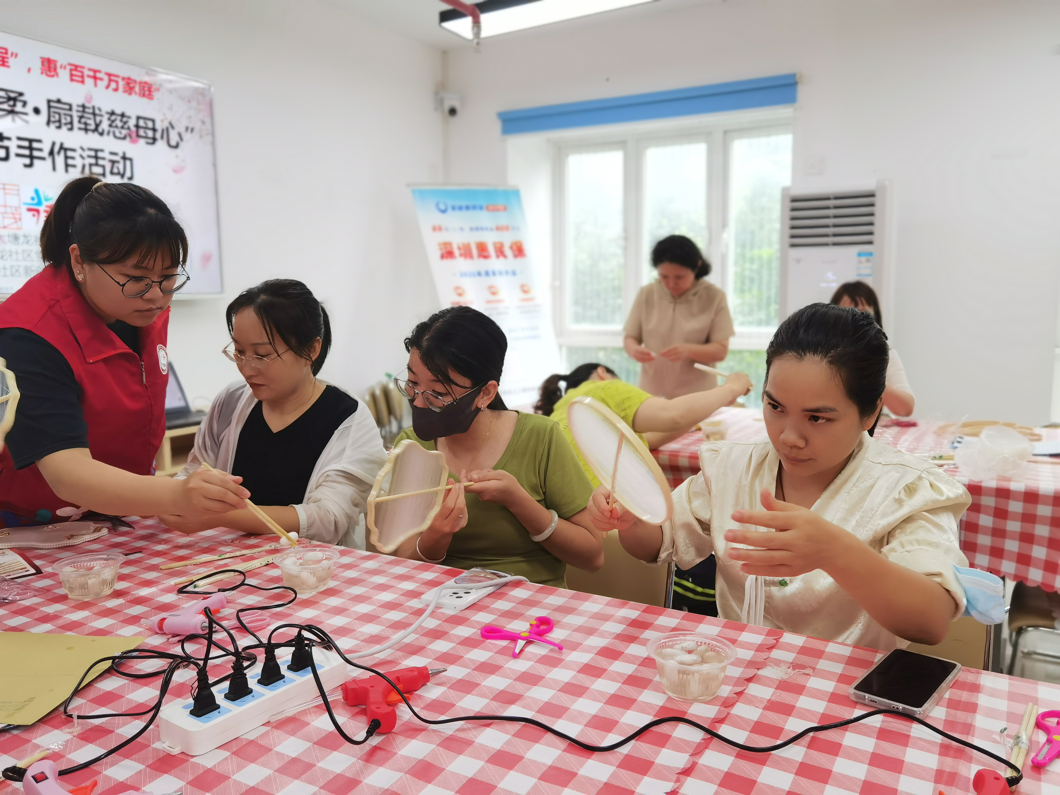 罗湖家园网讯:为积极响应“百千万工程”号召,弘扬中华民族传统美德,营造感恩母亲、关爱女性的良好社区氛围,2025年5月9日下午,大塘龙社区党委、大塘龙社区党群服务中心社工携手中国人寿保险共同开展了“丝缕绕指柔·扇载慈母心”母亲节手作活动。