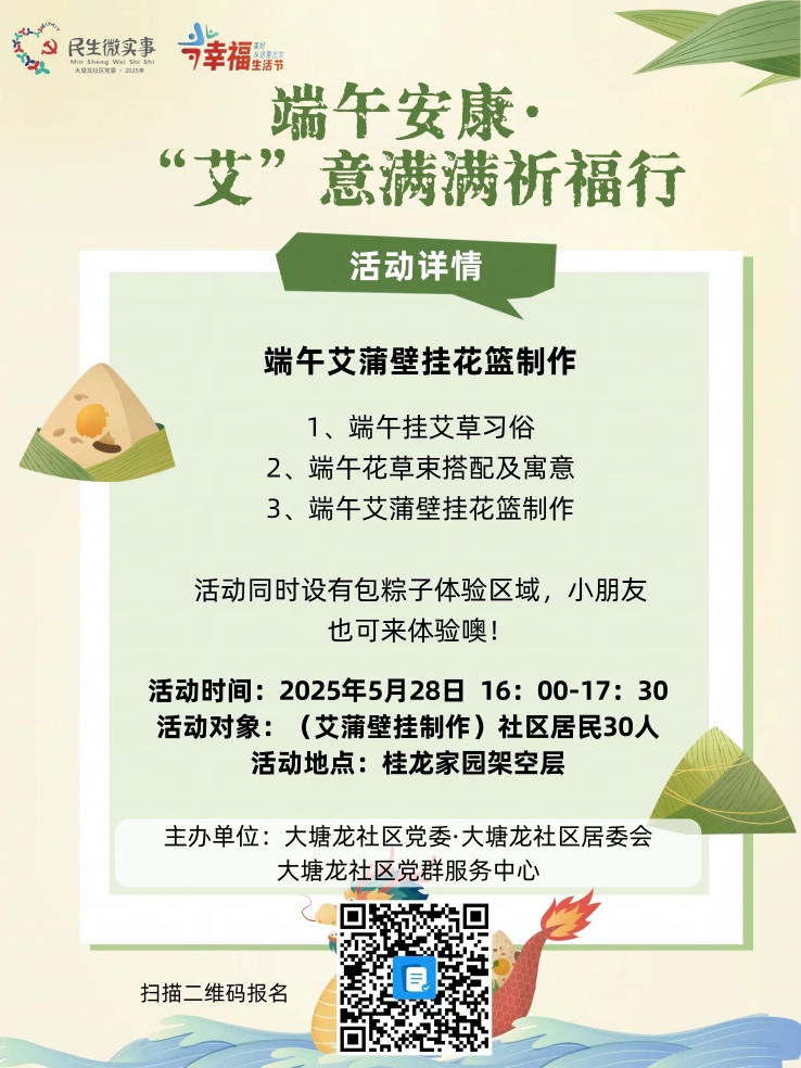 【民微招募】"节庆传情,邻里共融"大塘龙社区居委会节庆文化系列活动之端午安康·"艾"意满满祈福行