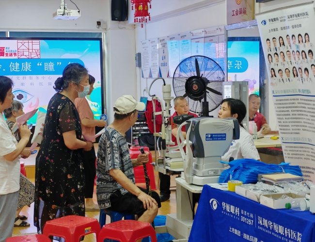罗湖家园网讯:为守护社区居民的眼部健康,普及爱眼护眼知识,2025年7月17日,大塘龙社区党委联动深圳市华厦眼科医院党支部开展了“乐享银龄,健康‘瞳’行”大塘龙社区义诊活动。通过整合医疗资源,将健康服务送到居民身边,帮助大家及时发现眼疾、及早干预治疗。