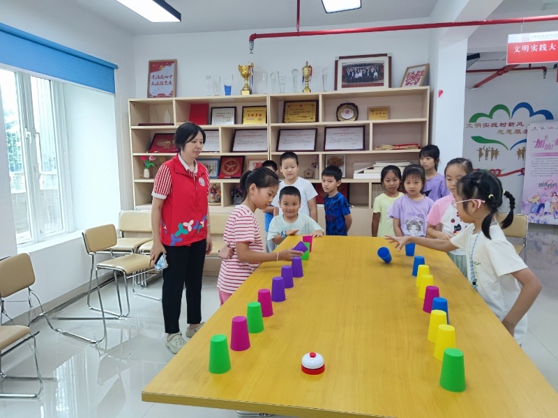 在“抗逆力三步骤”环节,社工通过“我有……”“我是……”和“我能……”的积极宣言,帮助孩子们发现自身优势,建立自信心。其中朱慕瑶小朋友分享道:“我以前觉得数学很难,但现在我相信‘我能学好数学’,我会更努力!”此外,“多米诺骨牌”、“眼疾手快”、“单手翻杯子”等游戏让孩子们在体验的过程中,深刻领悟失败与坚持的意义,锻炼了耐心和抗压能力。
