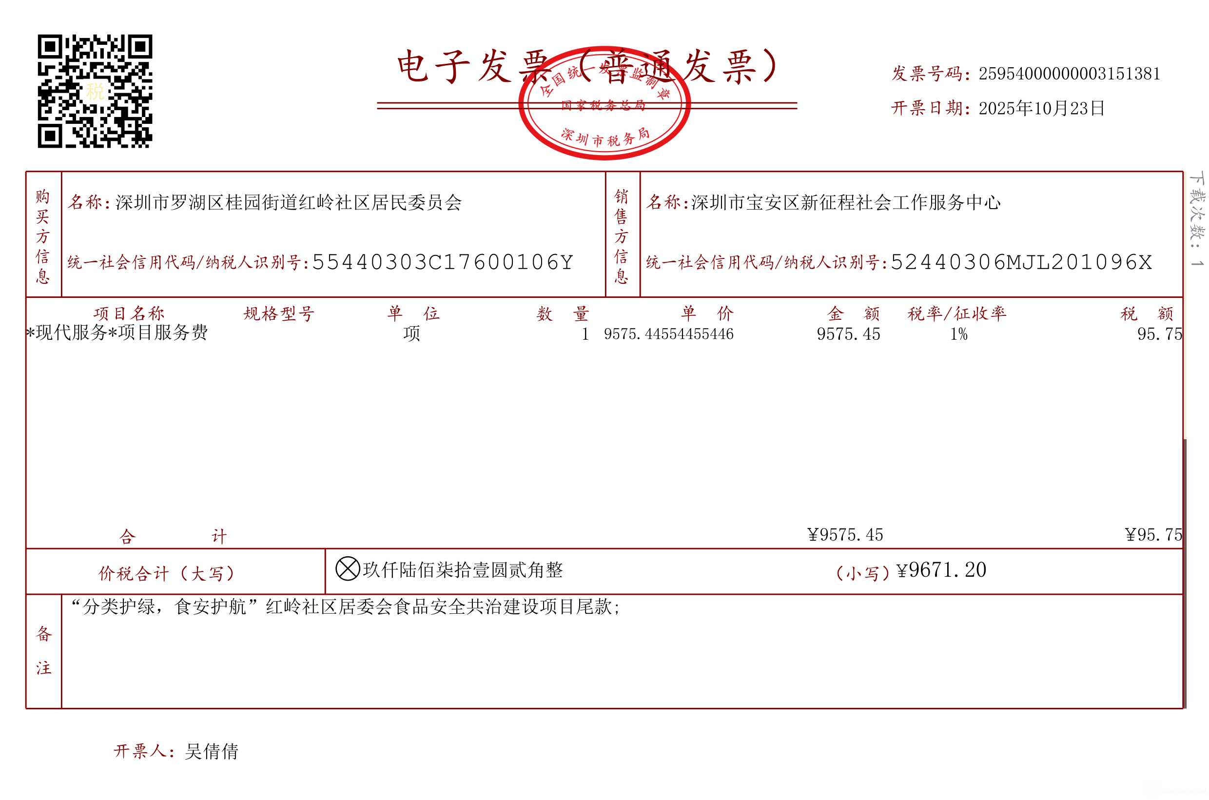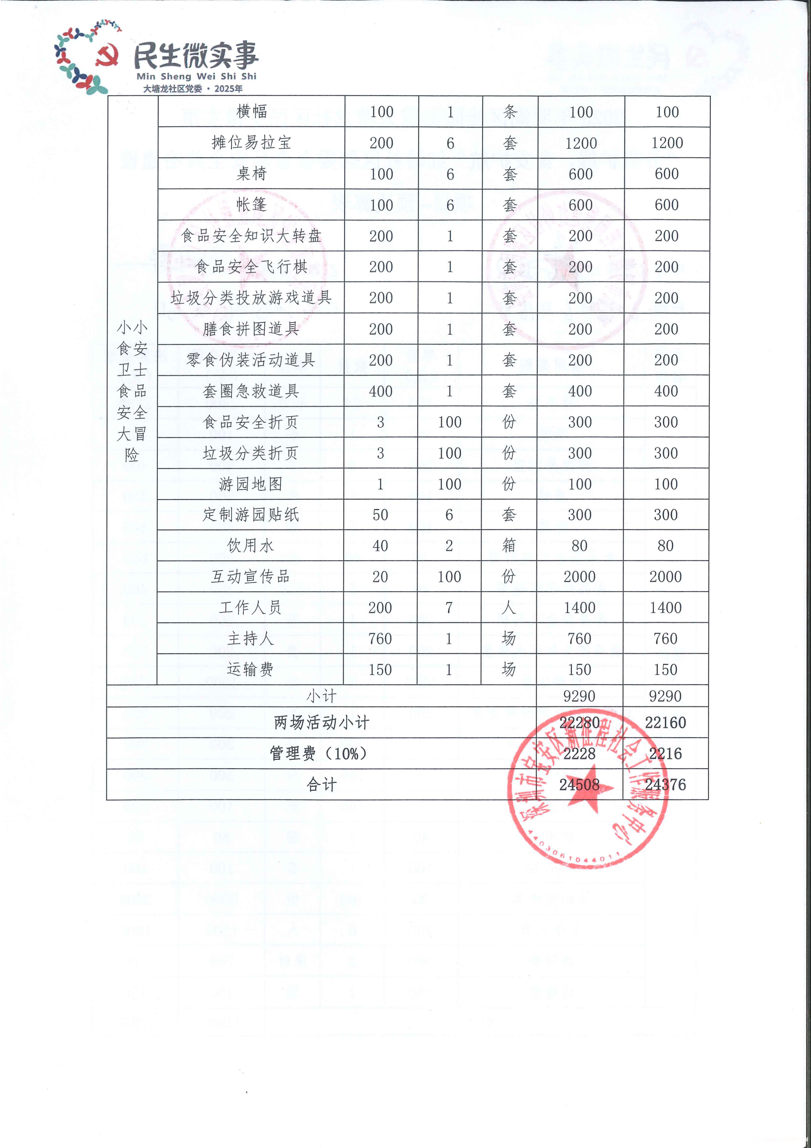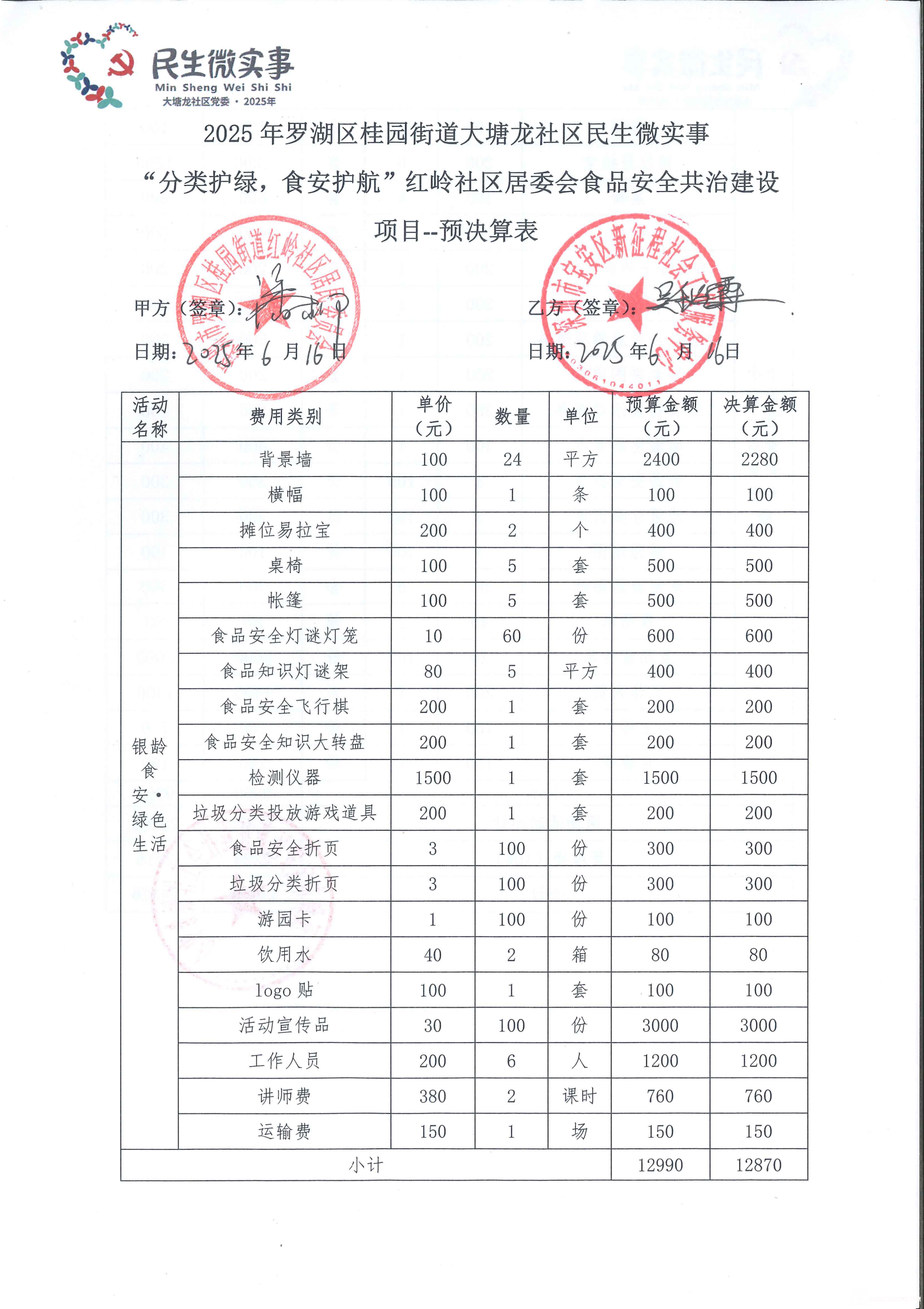 【民微支付】"分类护绿,食安护航"红岭社区居委会食品安全共治建设项目两期资金付款公示