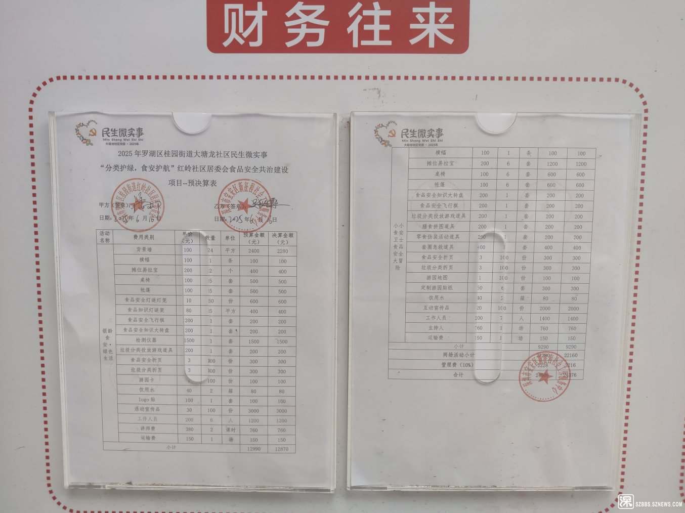 “分类护绿,食安护航”红岭社区居委会食品安全共治建设项目两期资金付款公示