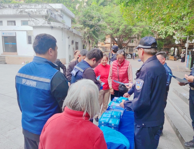 罗湖家园网讯:为进一步提升辖区居民识诈、防诈、反诈能力,切实守护群众“钱袋子”,2025年12月4日,大塘龙社区联合社区警务室在松园南小区广场开展反诈宣传活动。