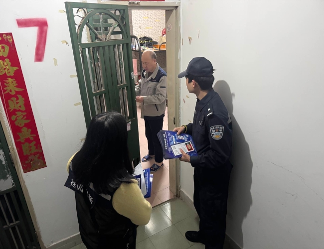 罗湖家园网讯:2026年1月28日,大塘龙社区联合社区警务室开展“反诈+消防”入户宣传活动,通过上门讲解反诈知识、排查消防安全隐患,切实筑牢居民安全防线。
