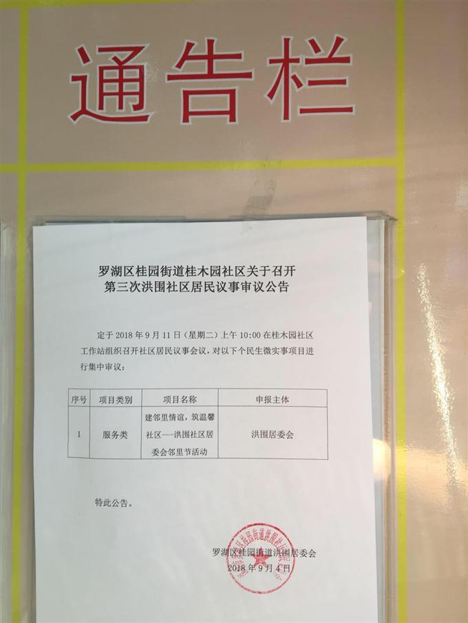 罗湖区桂园街道洪围居委会第三次社区民生微实事结果公示。