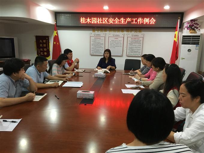 2018年10月22日下午,桂木园社区召开安全生产工作例会。因天气原因,近期为火灾高发期且临近冬季,要求社区网格员日常上访时留意住户是否安装直排式热水器和烟感报警器,另计划与管理处和房东一起组织开展消防演练活动。