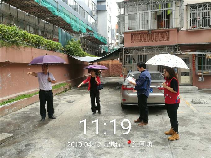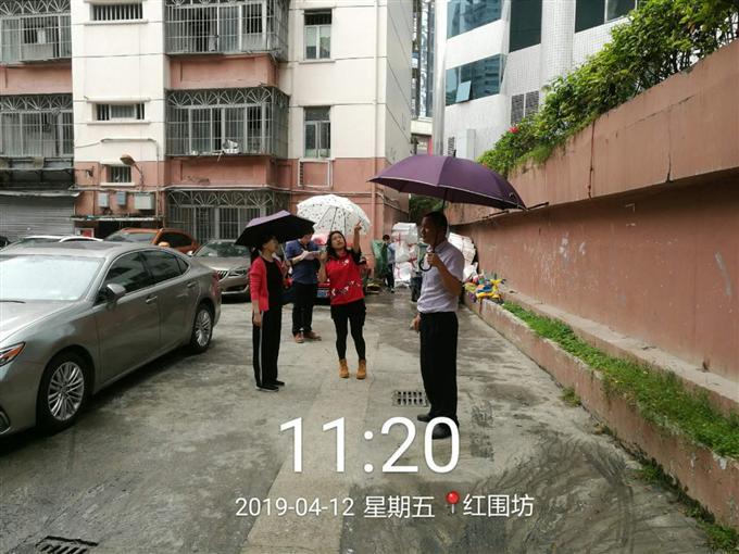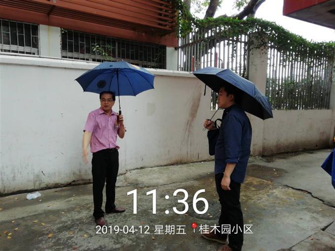 为做好汛期防汛涝工作,2019年4月12日上午,桂木园社区工作人员对辖区内易涝点、边坡隐患点进行排查,要求各物业负责人在汛期加强安全巡查,做好防范工作,对在建工地、施工地点加强管理。