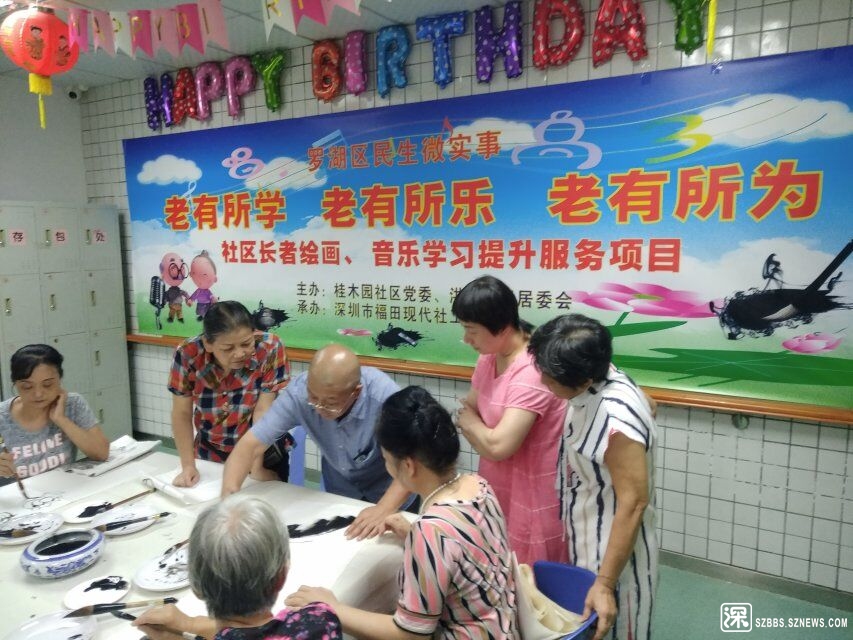 罗湖区家园网讯: 2019年8月30日下午,桂木园社区民生微实事项目“老有所学,老有所乐,老有所为--社区长者绘画音乐学习提升服务”(绘画学习提升第四节),在国都花园二楼老年人日间照料中心举行,新增学习内容有荷叶的画法,并个别辅导了没骨荷花的画法。老师还带领大家巩固了写意荷花的画法,重点强调了透视关系的处理。