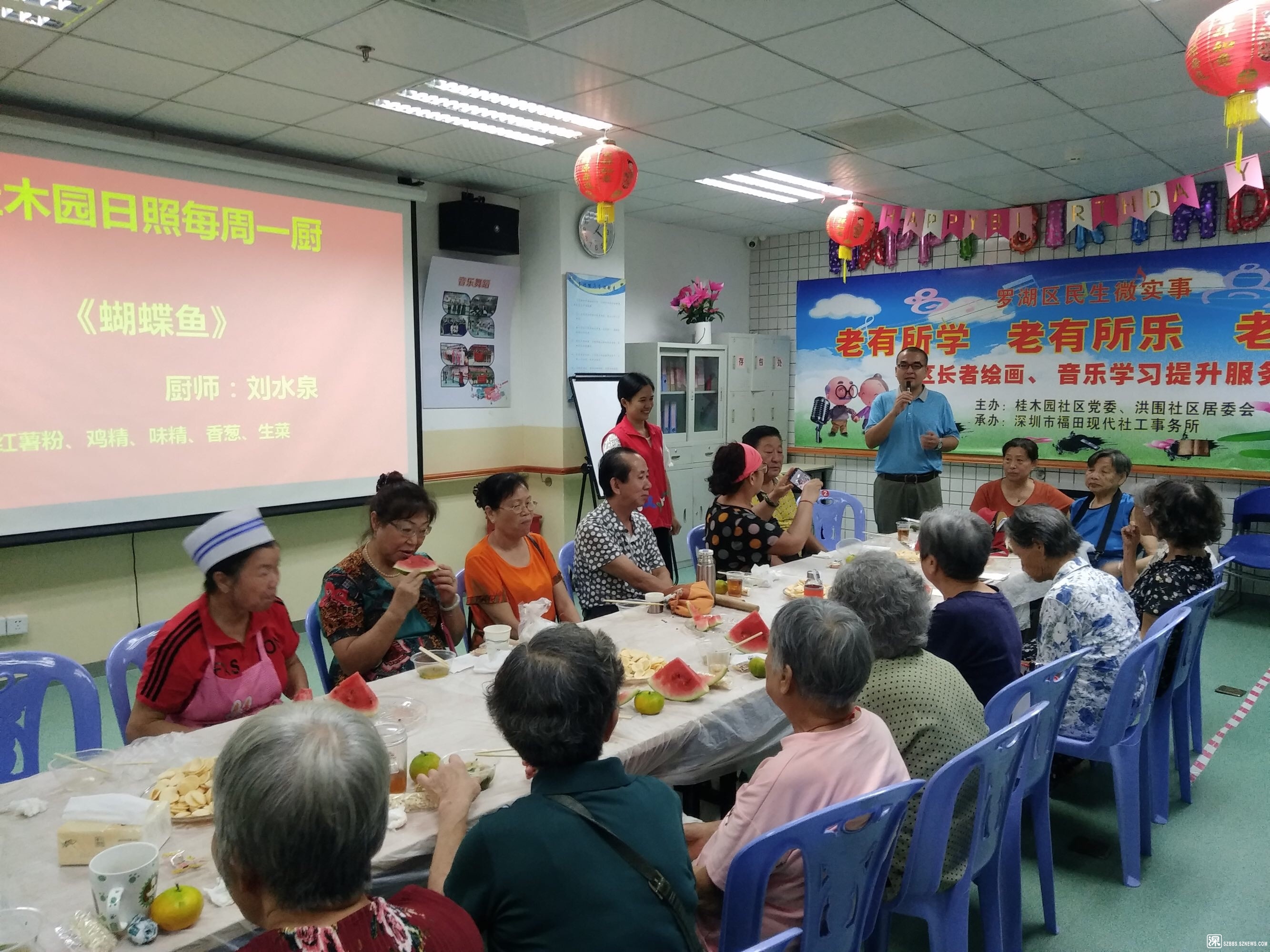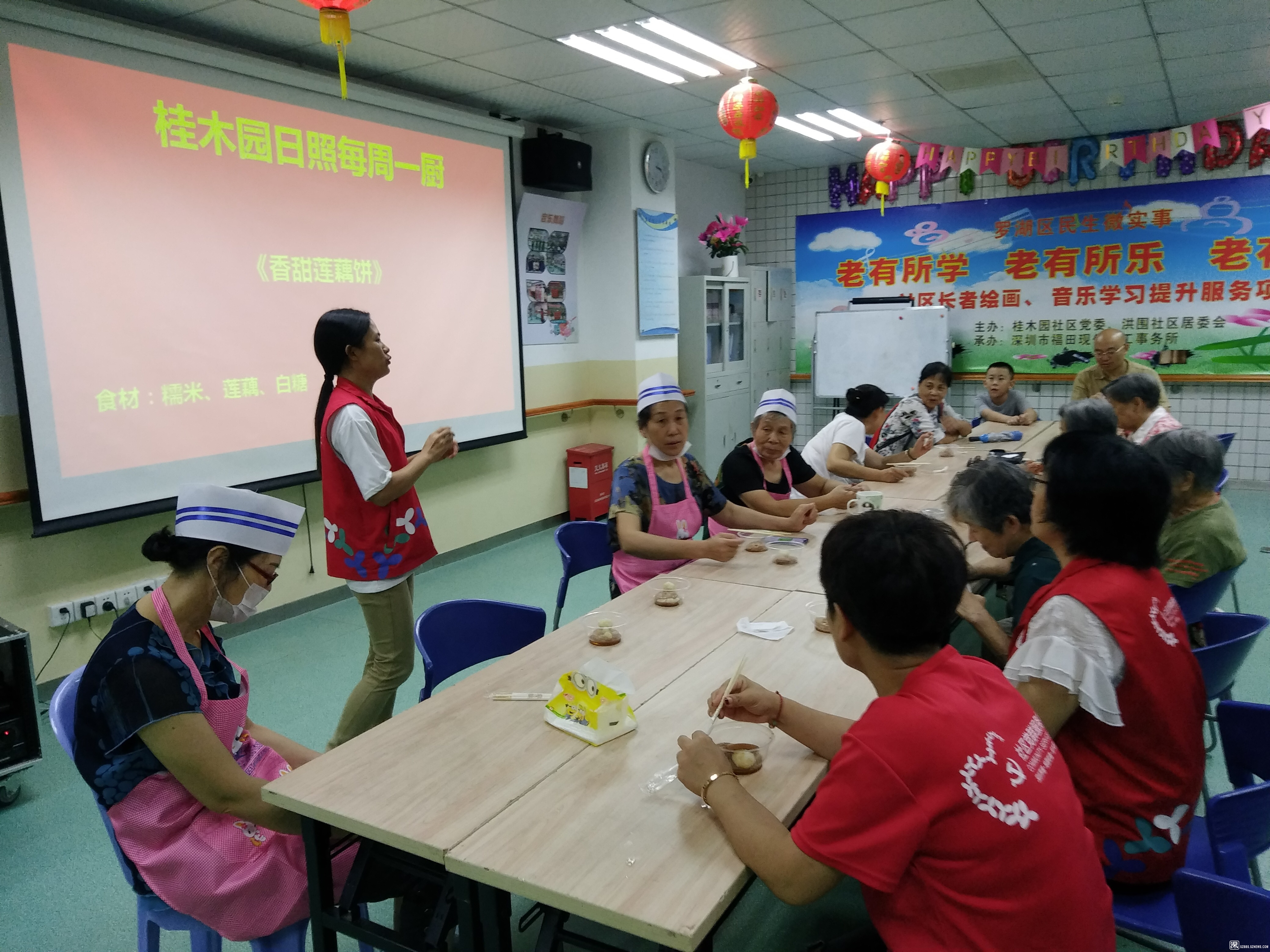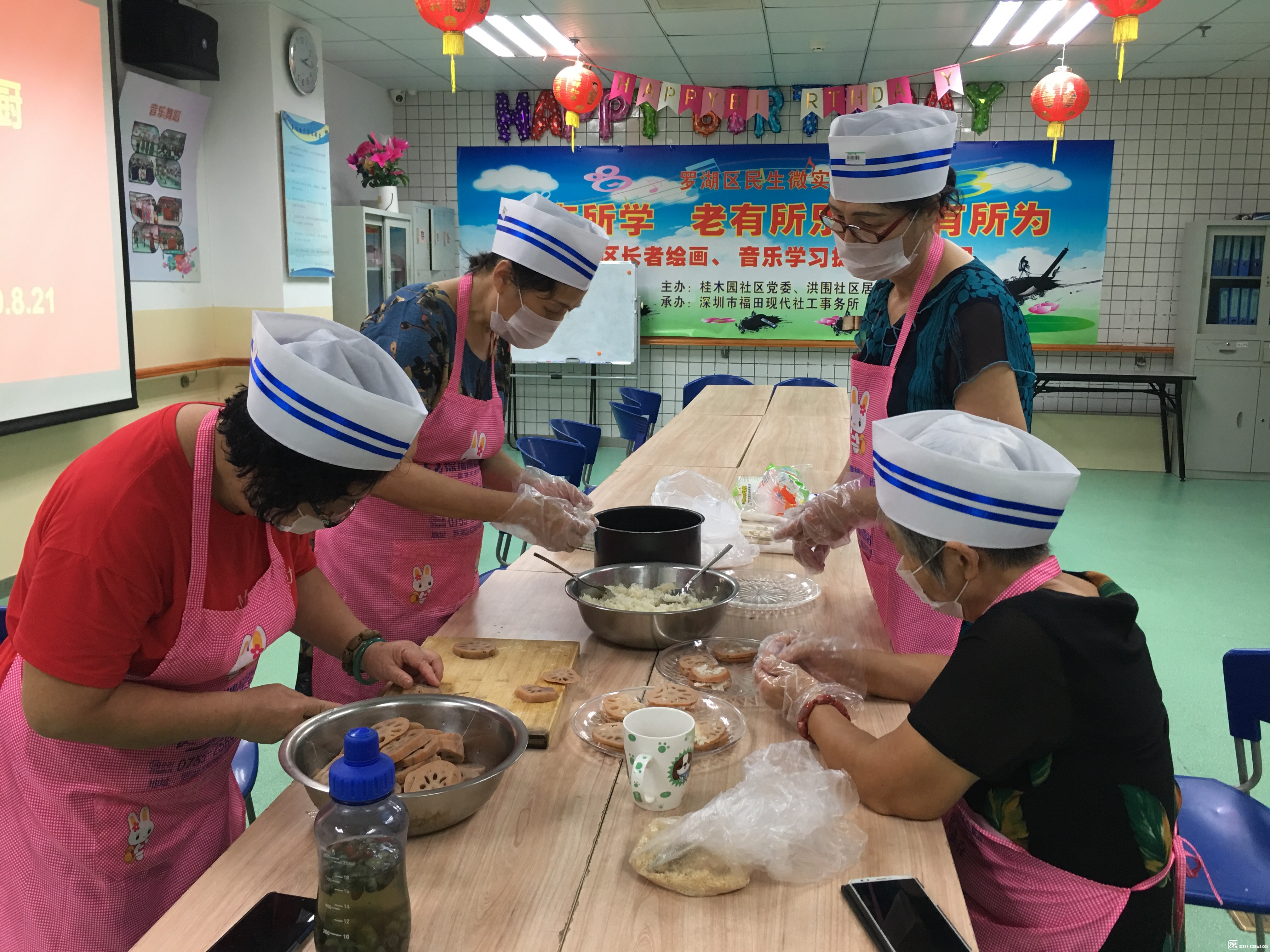 罗湖区家园网讯:为丰富社区长者退休生活,鼓励社区老人参与社区文化活动,传承传统文化气氛。做到老有所学,老有所乐的生活,2019年8月桂木园日照中心结合中国美食传统文化,开展了烘焙学习班~~~每周一厨美食活动, 又吸引着社区居民在老时间老地方聚在一起。本月活动共有61位居民参加。