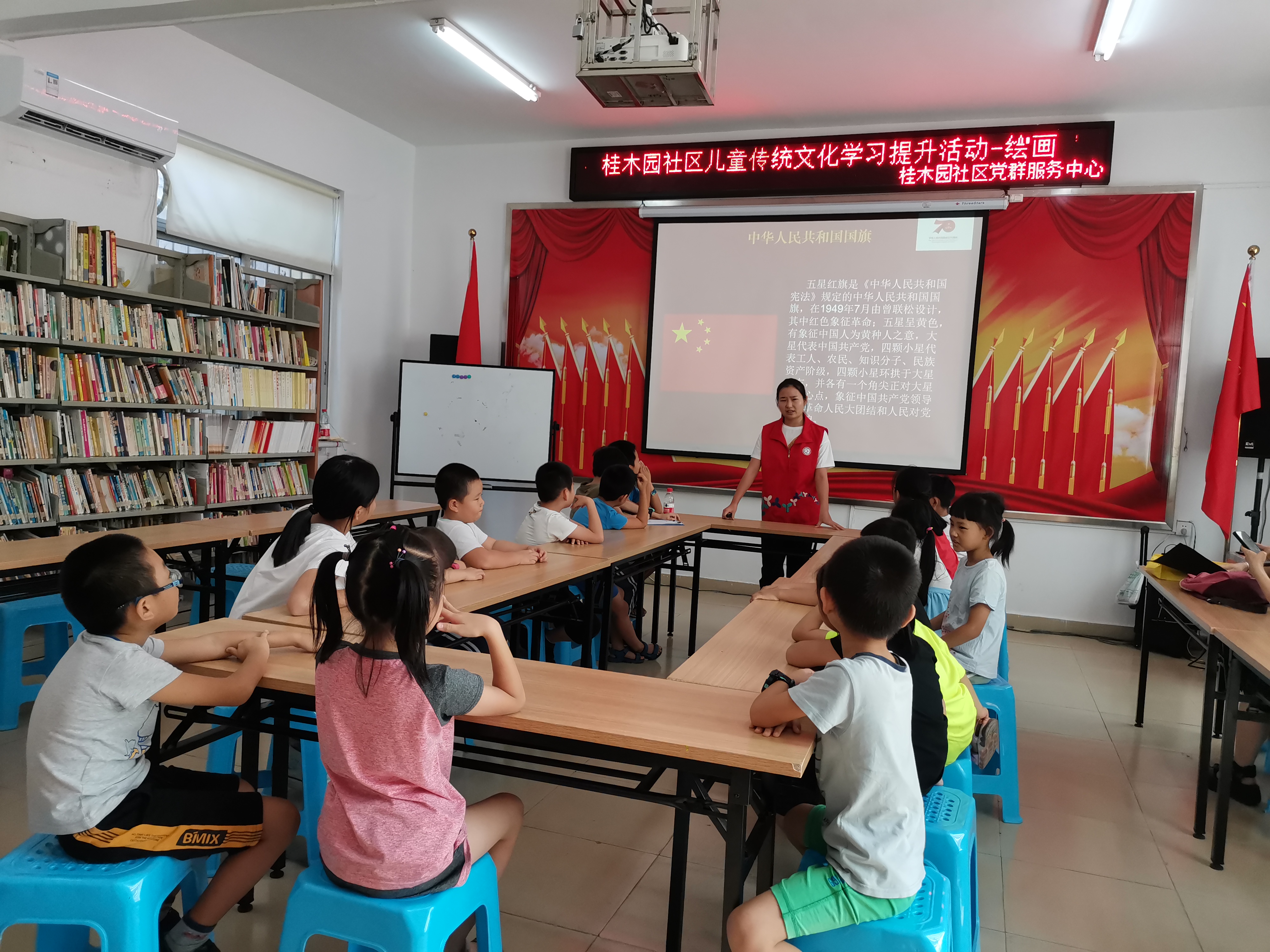 桂木园社区借助国庆节的教育契机,开展了此次活动,不仅让社区的孩子们学到了绘画知识,还加深了他们对祖国的认知与热爱,同时也加强了他们的民族自豪感和报国之心。