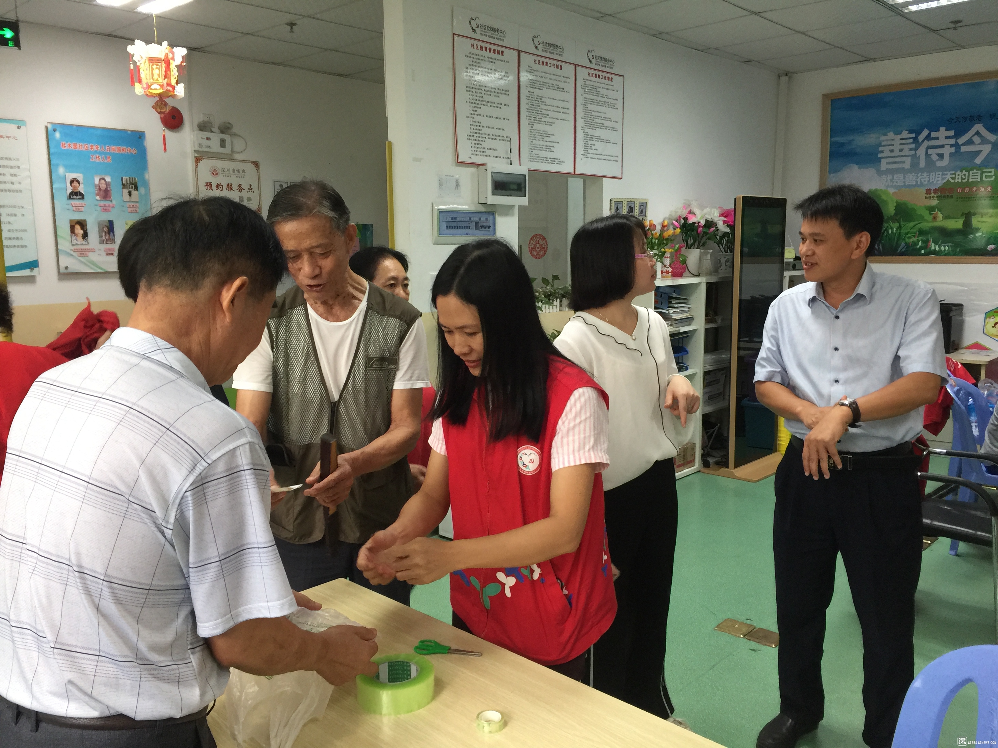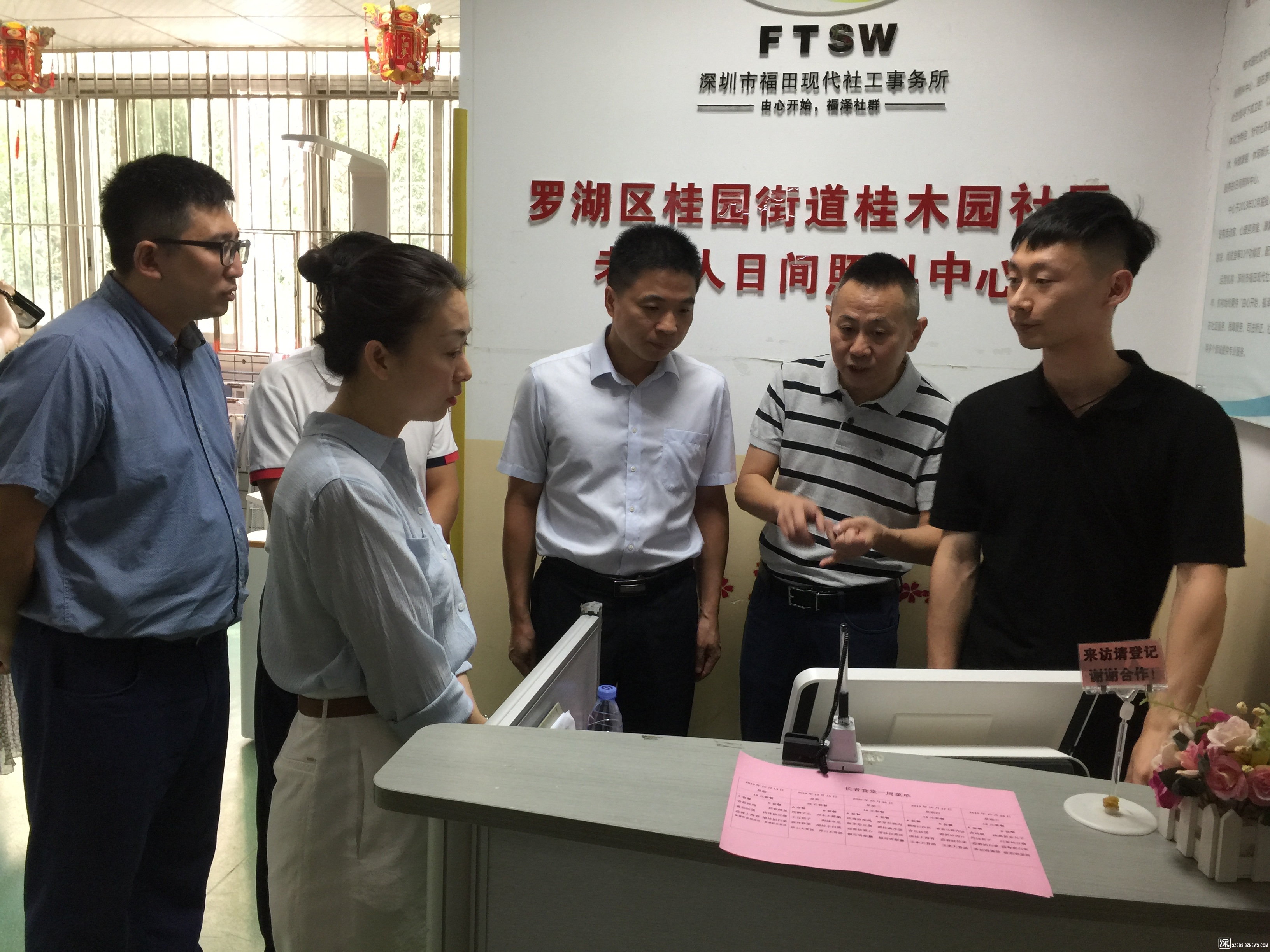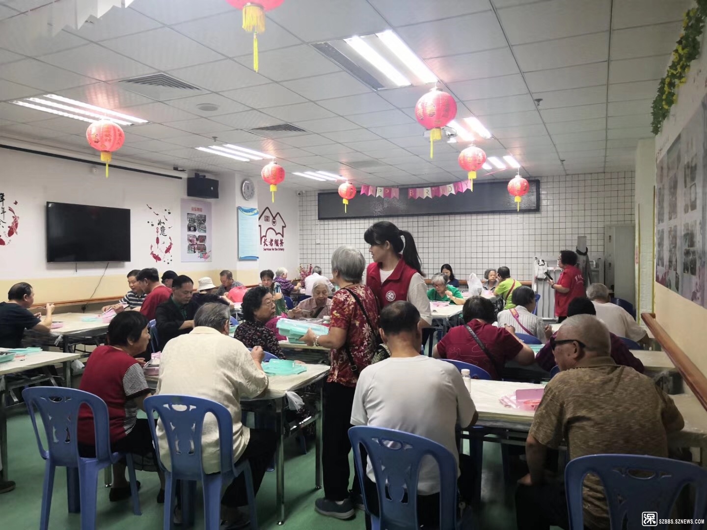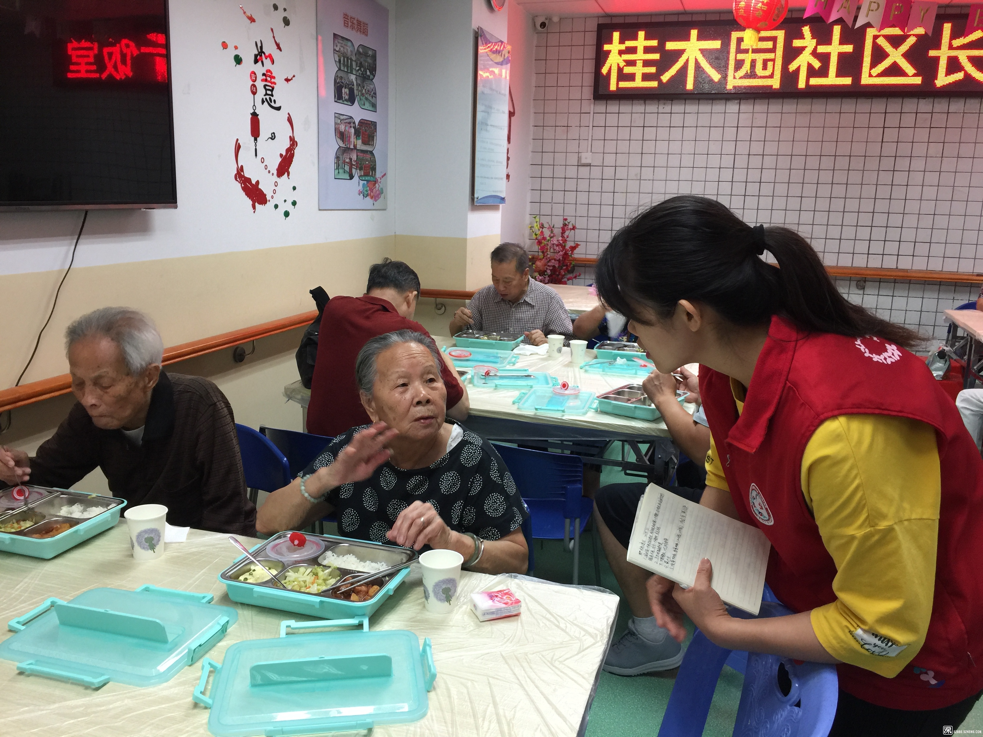 桂木园长者饭堂,就餐地点设在国都花园二楼桂木园社区老年人日间照料中心,负责该中心运营的社工机构深圳市福田现代社工事务所的总干事郭明仁、副总肖丽怡和黄小芳督导也来到现场,指导和协助饭堂服务。