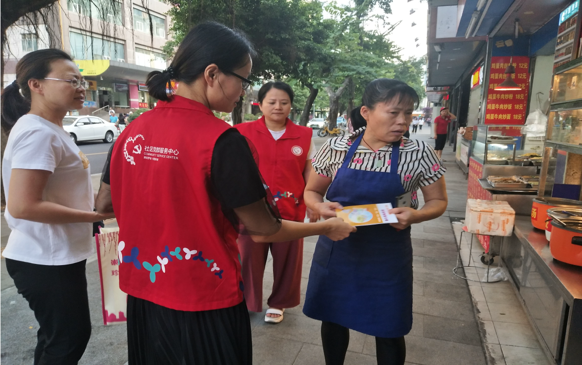 罗湖区家园网讯:2019 年10 月25 日下午,桂木园社区党委组织工作站工作人员及网格员,在社区开展“公益一小时”志愿者活动,清理、捡拾辖区主要路段和老旧小区的垃圾;并向居民派发《和谐家庭计划》手册,向沿路的餐厅、酒店等服务行业发放创文禁烟标识和光盘行动宣传品,为迎接创建文明城市检查夯实基础。