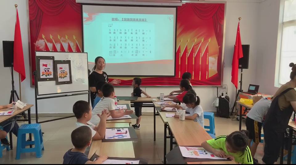 “五星红旗是《中华人民共和国宪法》规定的中华人民共和国国旗……”桂木园社区党群服务中心的社工先是以国旗、国徽和国歌背后的故事为开端,接着向孩子们讲述了中国抗战十四年,革命先烈们的艰辛和付出,让孩子们了解到现在幸福生活的来之不易。接下来的活动中孩子们一个个手握五彩的画笔,用一张纸、一颗认真地心,尽情描绘出自己心中的祖国。活动最后,孩子们齐声唱起了《国旗国旗真美丽》,稚嫩的歌声是他们对祖国最真挚的祝福。他们虽然还只是孩子,但是他们用手中的画笔和歌声,表达了对祖国无限的憧憬和满心的热爱。