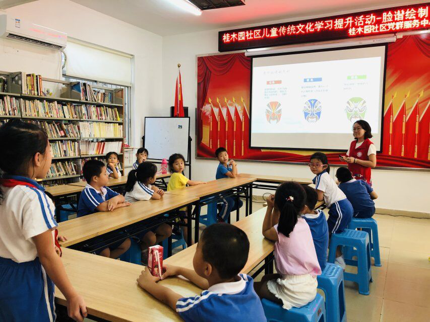 “那一天爷爷领我去把京戏看,看见那舞台上面好多大花脸,红白黄绿蓝咧嘴又瞪眼......”2019年10月11日下午随着这首《说唱脸谱》的旋律,20位孩子在桂木园社区儿童传统文化学习提升-脸谱绘制活动中开启了走近国粹京剧、了解京剧脸谱之旅。本次活动是由桂木园社区党委支持下,由桂木园社区党群服务中心开展。