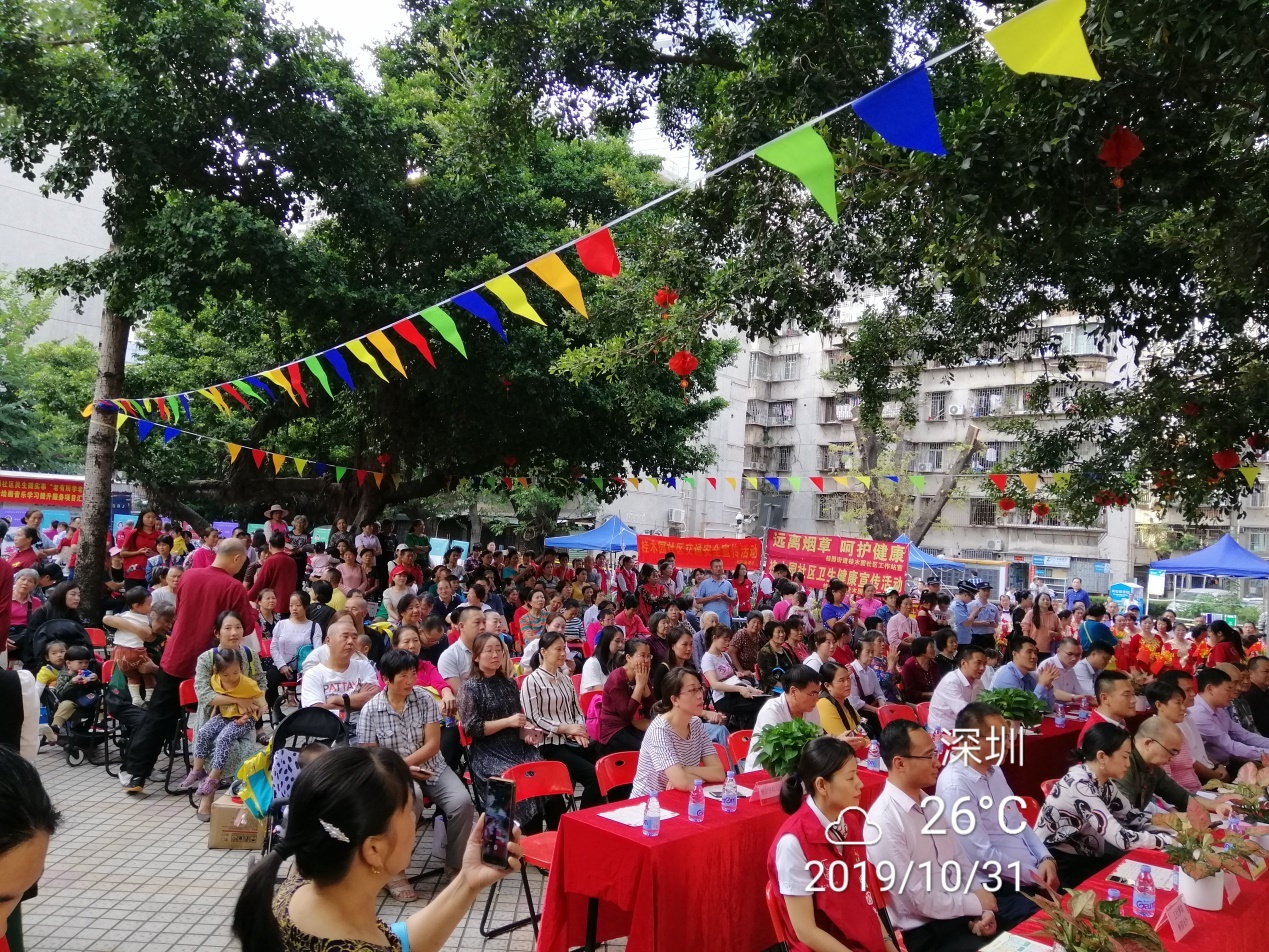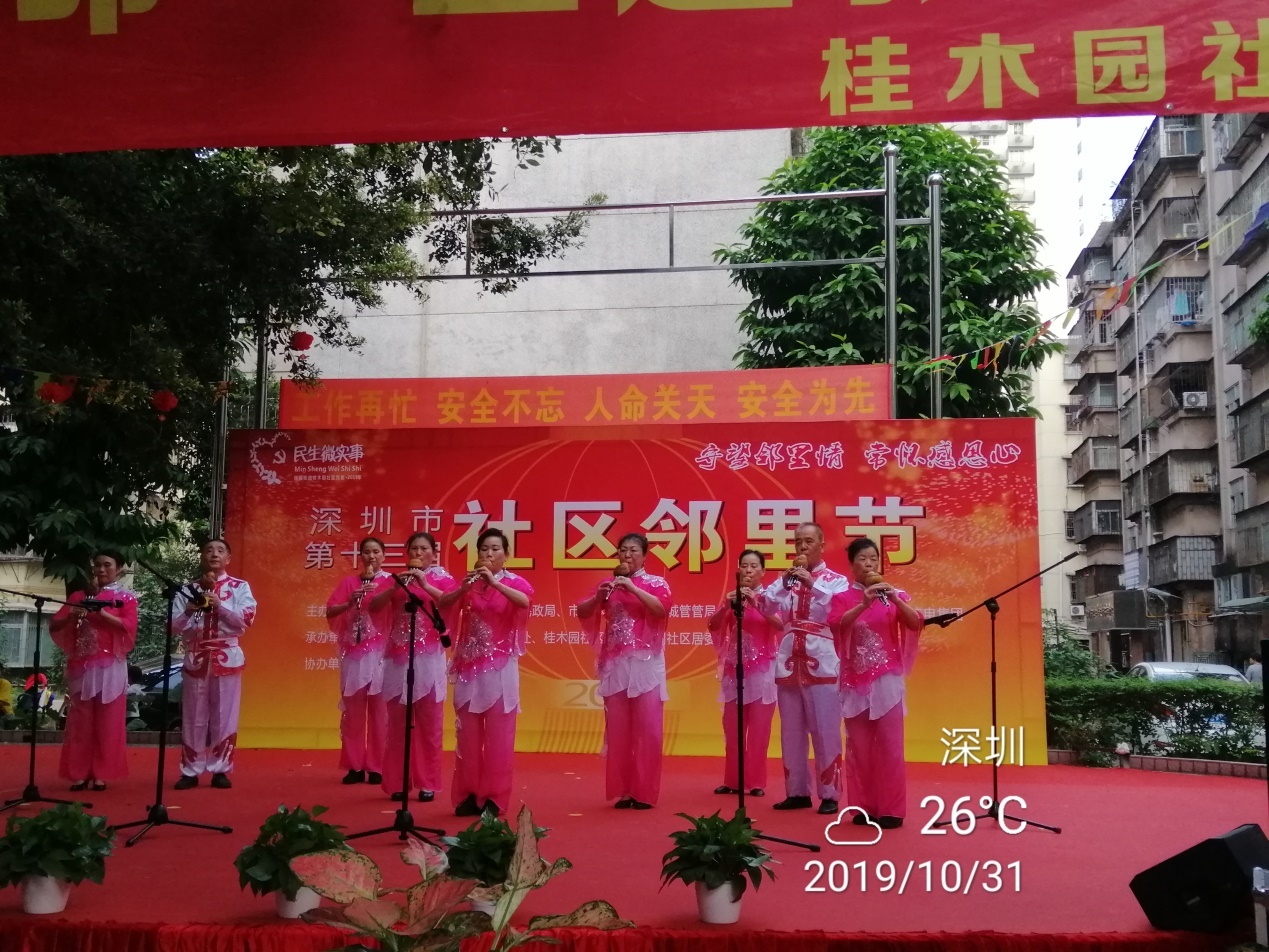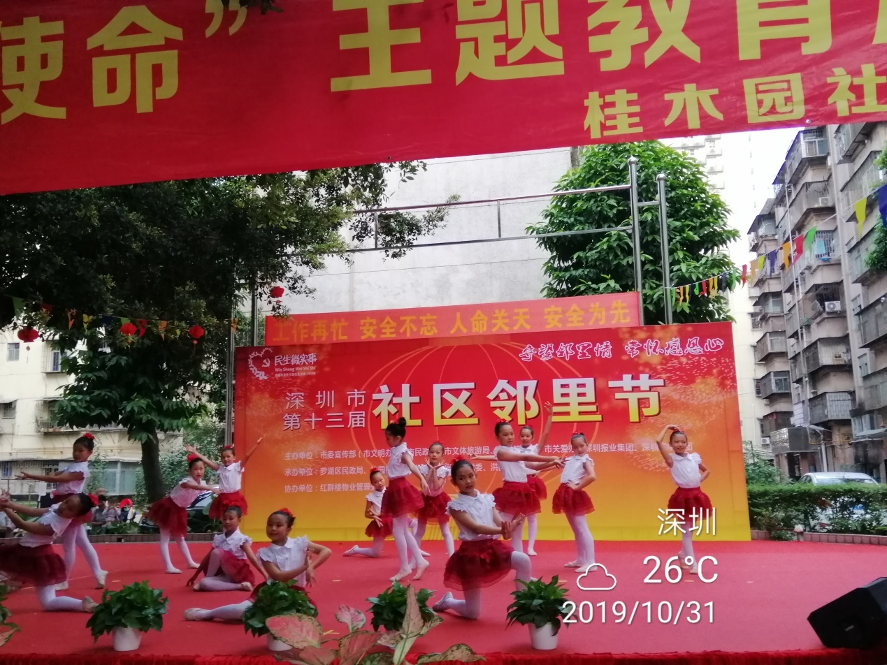 罗湖区家园网讯:2019年10月31日下午,由桂园街办事处、桂木园社区党委、洪围社区居委会共同主办的2019年深圳市第十三届洪围社区“守望邻里情,常怀感恩心”邻里节活动,在红群楼小区广场隆重举行。