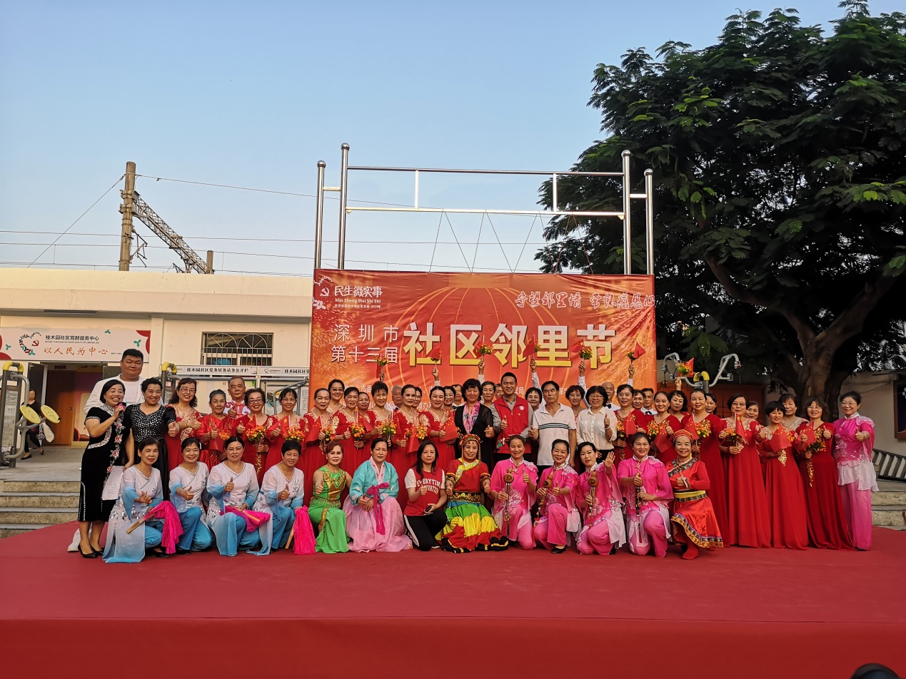 罗湖区家园网讯:11月1日下午,在果园东10号木材公司大院文体广场开展桂木园社区“守望邻里情,常怀感恩心 ”邻里节文艺表演活动。活动安排了舞蹈、合唱、乐器演奏及创文有奖问答互动环节等多项内容,为社区居民带来了精彩纷呈的节目。