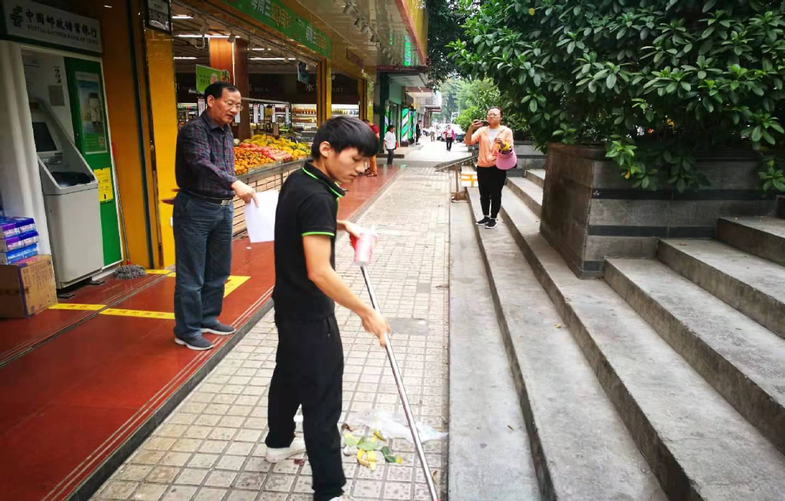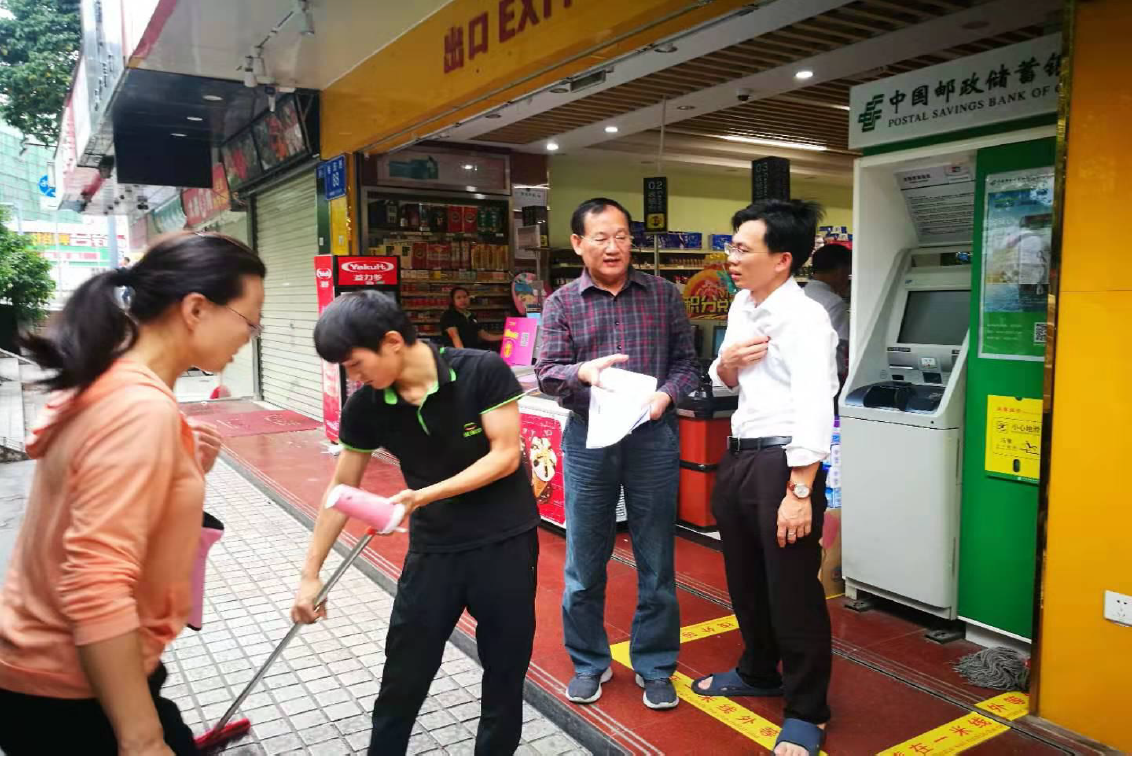 问题二在桂园路88 号美宜多超市门前,发现地上垃圾没有清扫干净,桂园街道办事处二级调研员梁伟奇,桂园街道党工委委员、桂木园社区驻点第一书记高树宝要求社区卫生专干和美宜多超市负责人到现场,并向超市负责人宣传创文的重要性与必要性,要求社区卫生专干加强日常的巡查和督导工作。