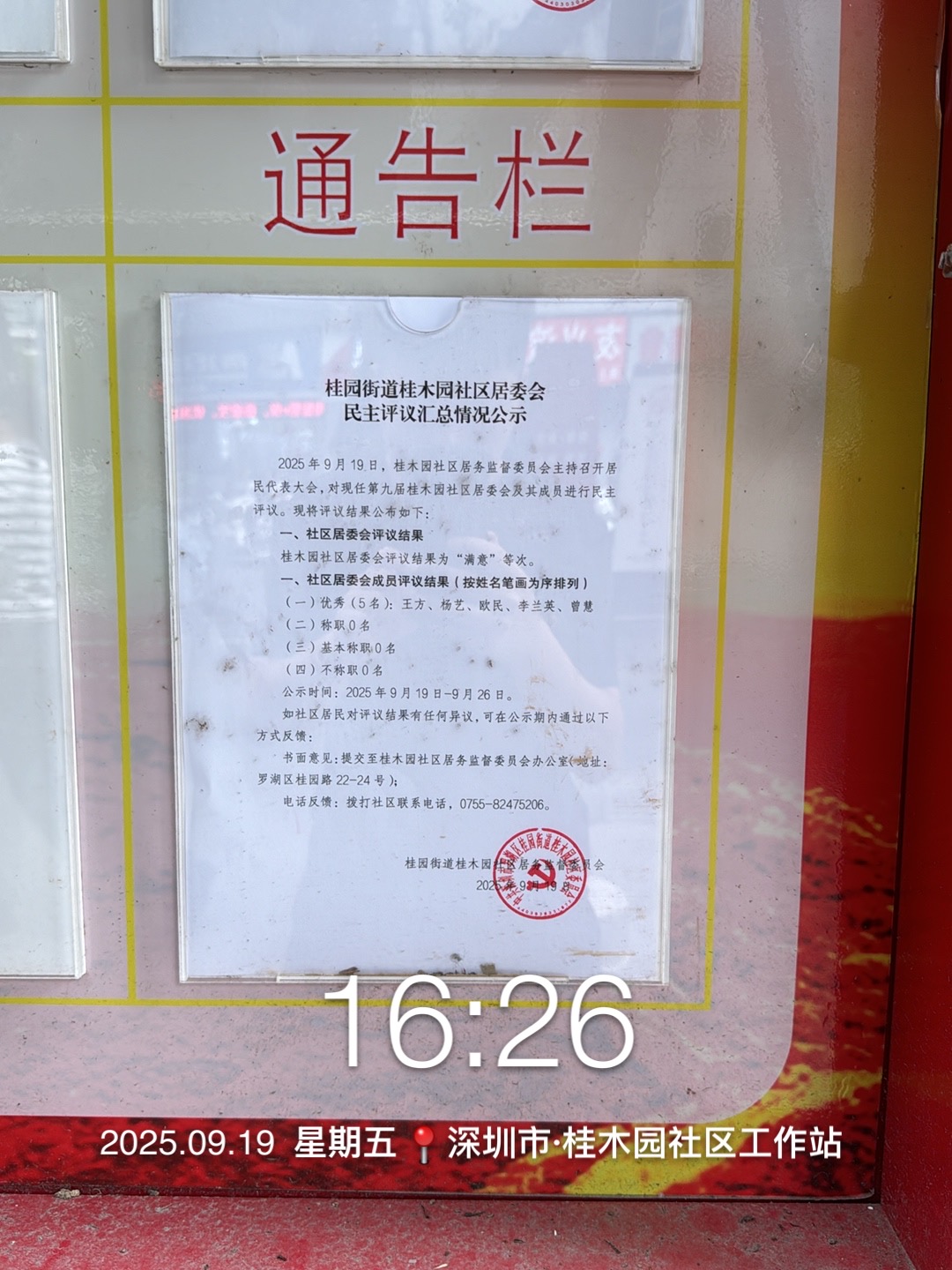 桂木园社区居委会民主评议汇总情况公示