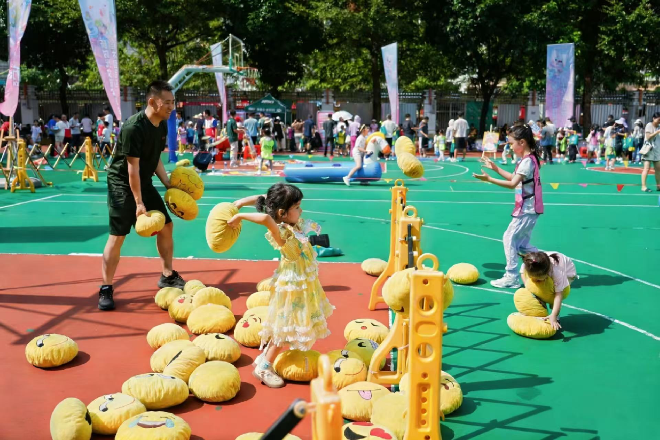 整场活动内容丰富多彩。“活力四射运动挑战区”的亲子高尔夫、枕头丢丢乐、毛毛虫竞速,考验着亲子间的默契与协作;“奇趣无穷智慧游园区”的眼疾手快、蒙眼敲锣、趣味绕口令,则让孩子们在游戏中启迪了智慧。现场欢声笑语此起彼伏,平日里忙碌的家长全身心投入,与孩子一起奔跑、呐喊、合作,曾经的“小淘气”变成了并肩作战的“好队友”,亲子情感在运动的汗水与成功的喜悦中迅速升温。