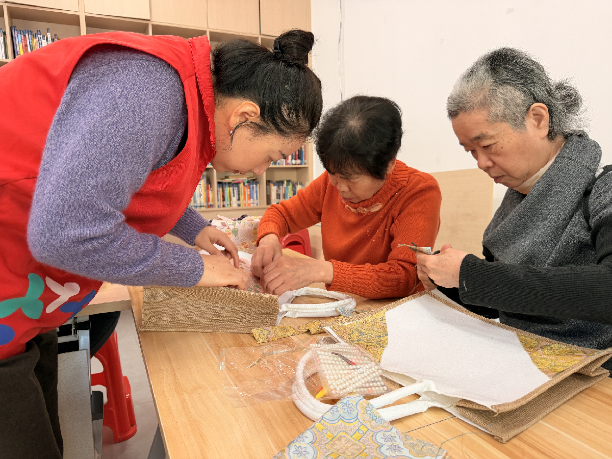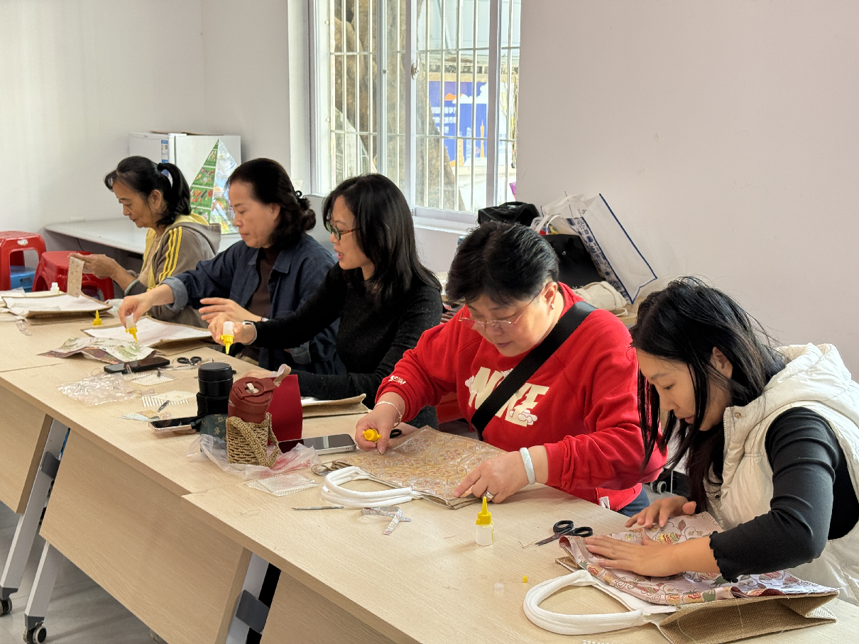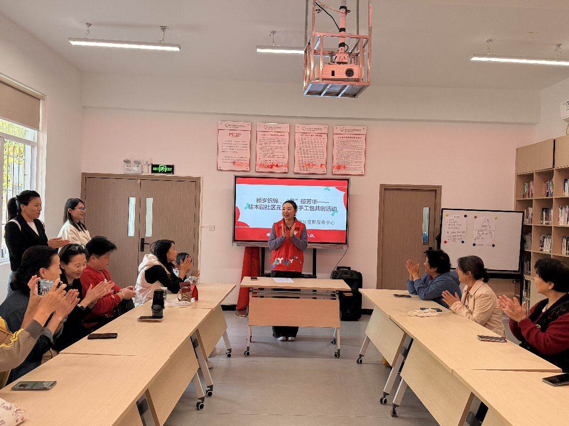 1月1日上午,“新岁织锦,‘包’揽芳华”元旦宋锦手工包共创活动在桂木园社区党群服务中心活动室温馨开启。15位社区女性居民齐聚一堂,以指尖传承非遗宋锦技艺,用巧手编织新年祝福,共迎充满希望与美好的崭新一年。