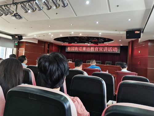 罗湖家园网讯:为进一步增强党员的廉洁自律意识,筑牢思想防线。2021年7月22日下午,在桂园街道办事处七楼会议室举办廉洁教育宣讲活动。红村社区党委书记、工作站站长蔡建新带领社区纪检委员参加了本次活动。通过宣讲活动,大家更清醒地认识到严守纪律规矩的重要性,每一个党员群众都应该做遵纪守法的践行者。