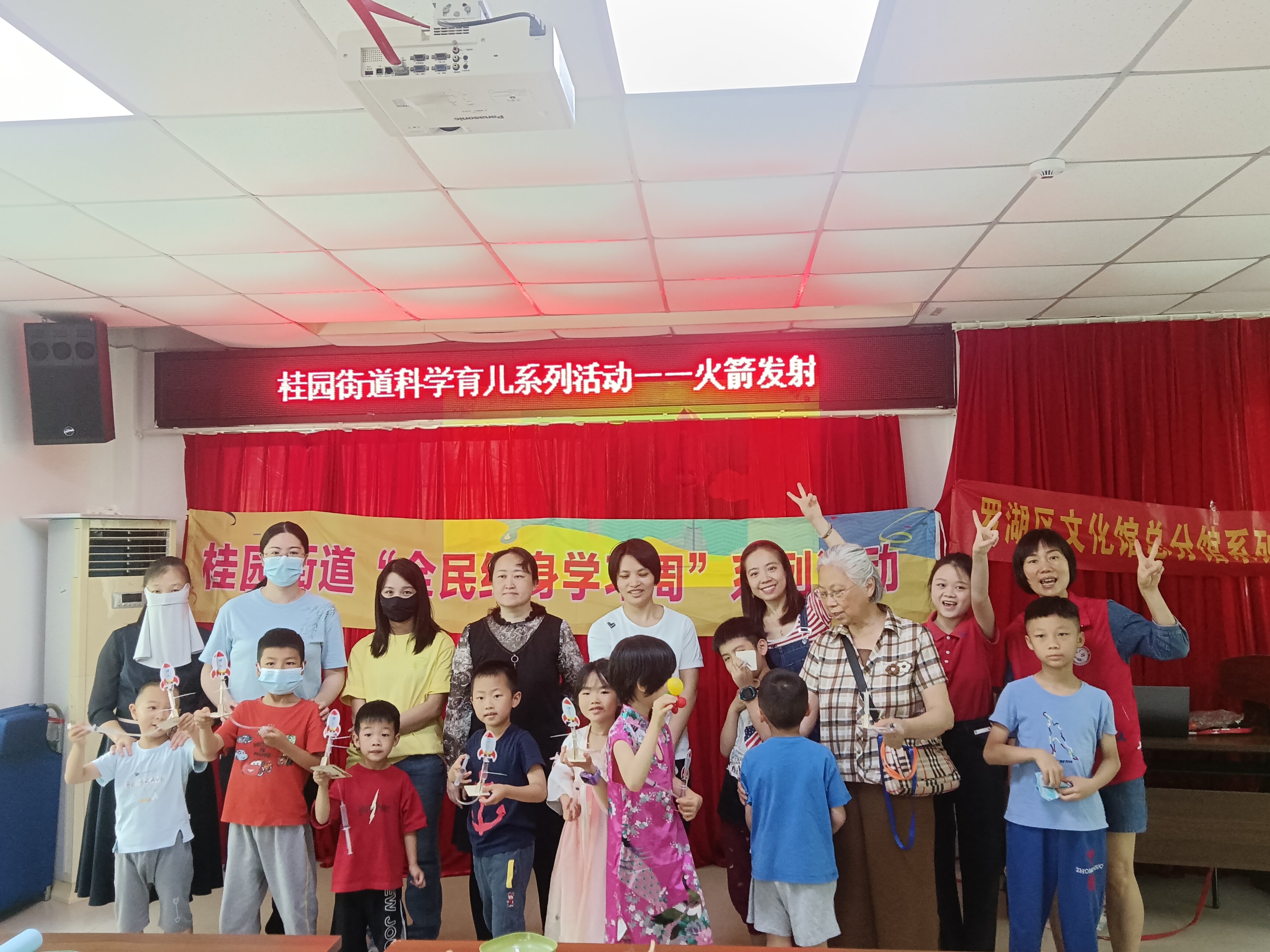 罗湖家园网讯:为响应百千万科技强国号召,激发社区幼儿的科学探索兴趣,培养动手实践能力,红村社区党委、红村社区党群服务站中心近日开展"小小科学家——火箭发射器"亲子活动。本次活动共吸引社区12组家庭参与,让科技强国梦从娃娃的指尖生根发芽。
