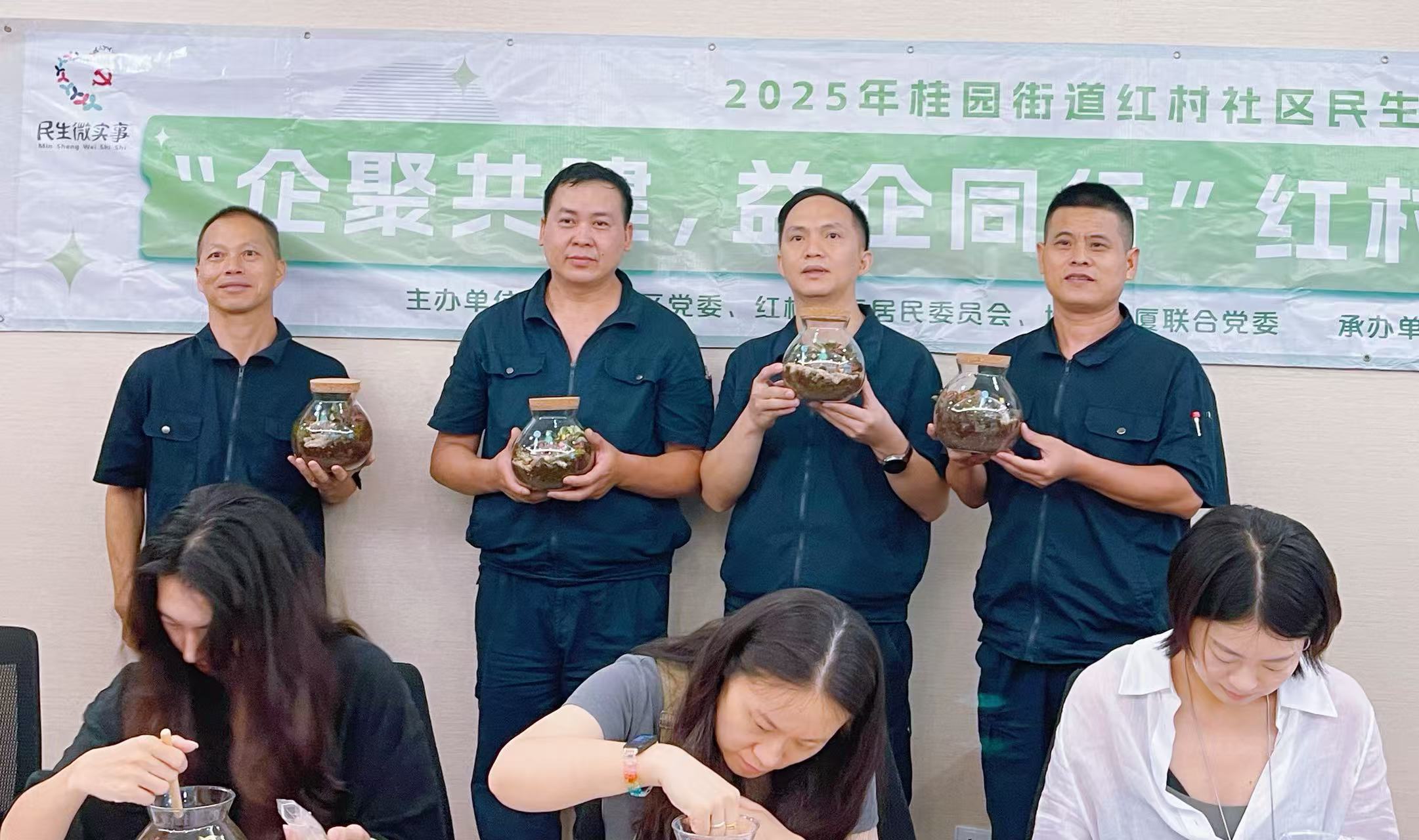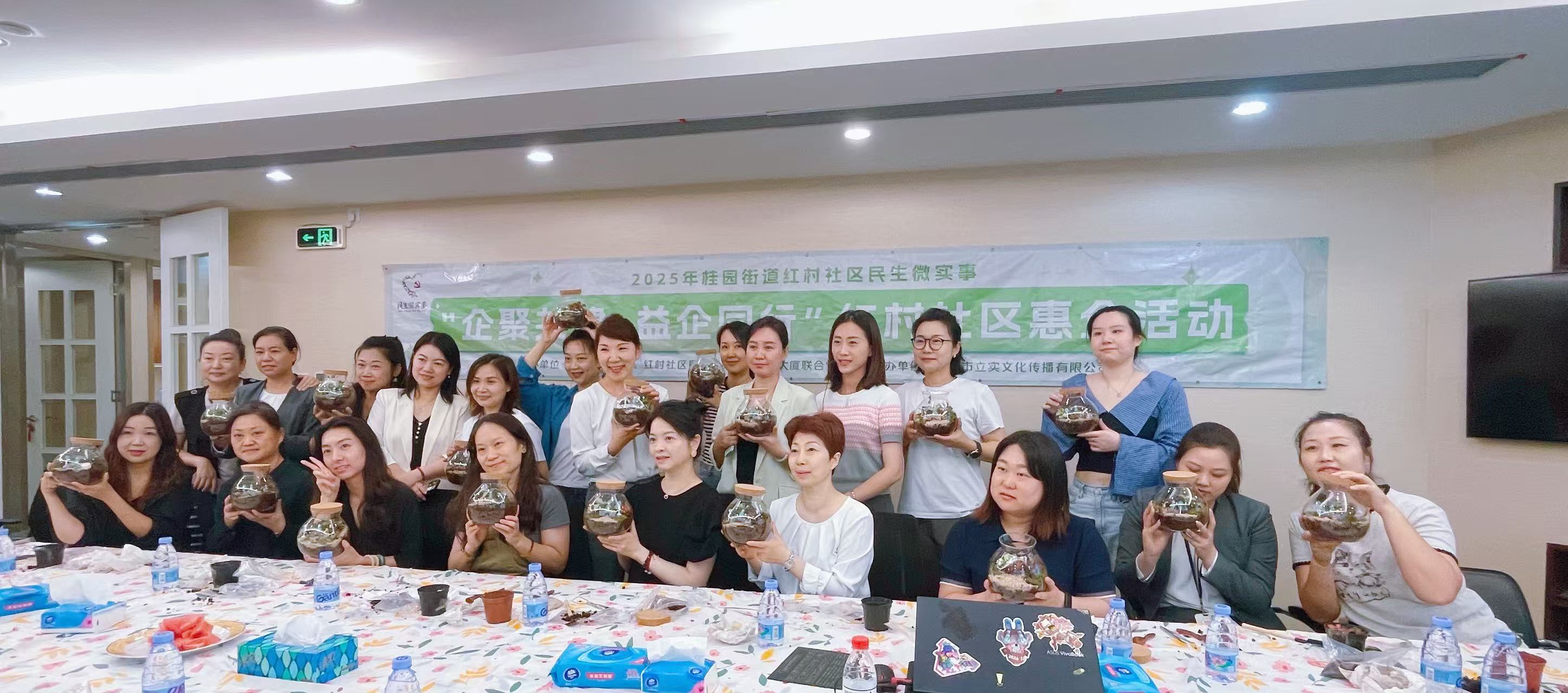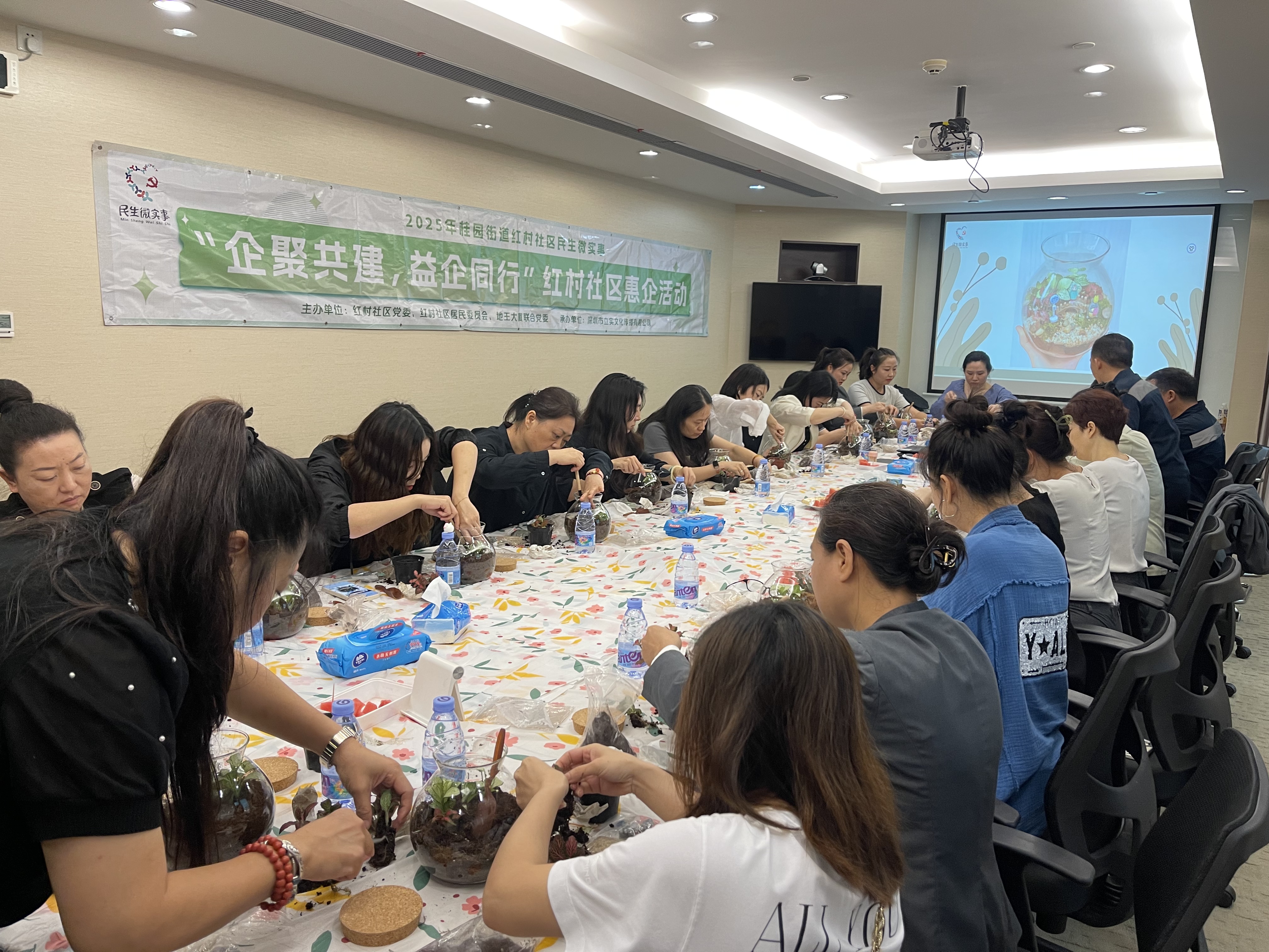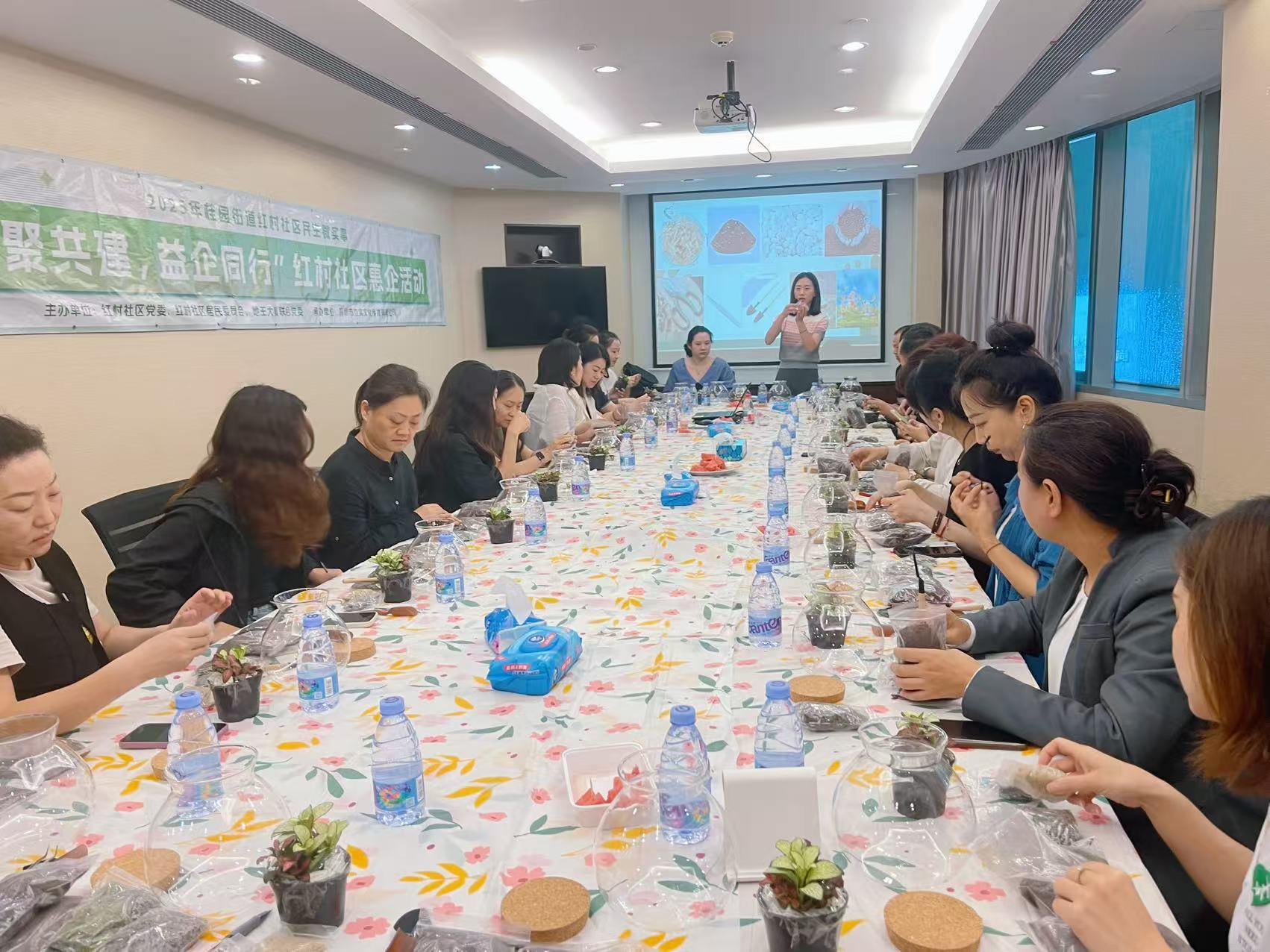 罗湖家园网讯:5月29日(周四)下午,由红村社区党委、红村社区居委会联和主办的2025年民生微实事项目——"企聚共建,益企同行"惠企活动--绿植组合盆栽主题手工