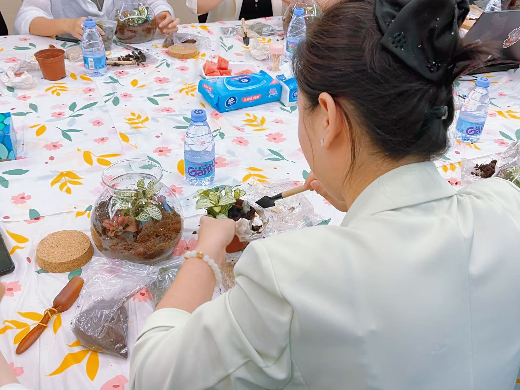 活动现场,花艺老师通过"理论+实操"教学模式,系统讲解各种植物养护知识。从土壤处理到植株布局,从装饰点缀到日常维护,手把手指导参与的职工们完成个性化盆栽创作。职工们在两小时沉浸式体验中,既掌握了园艺技能,更实现了压力释放。现场诞生了25件充满创意的盆栽作品,其中既有巧思独运的个性表达,也不乏集体智慧的交融碰撞。