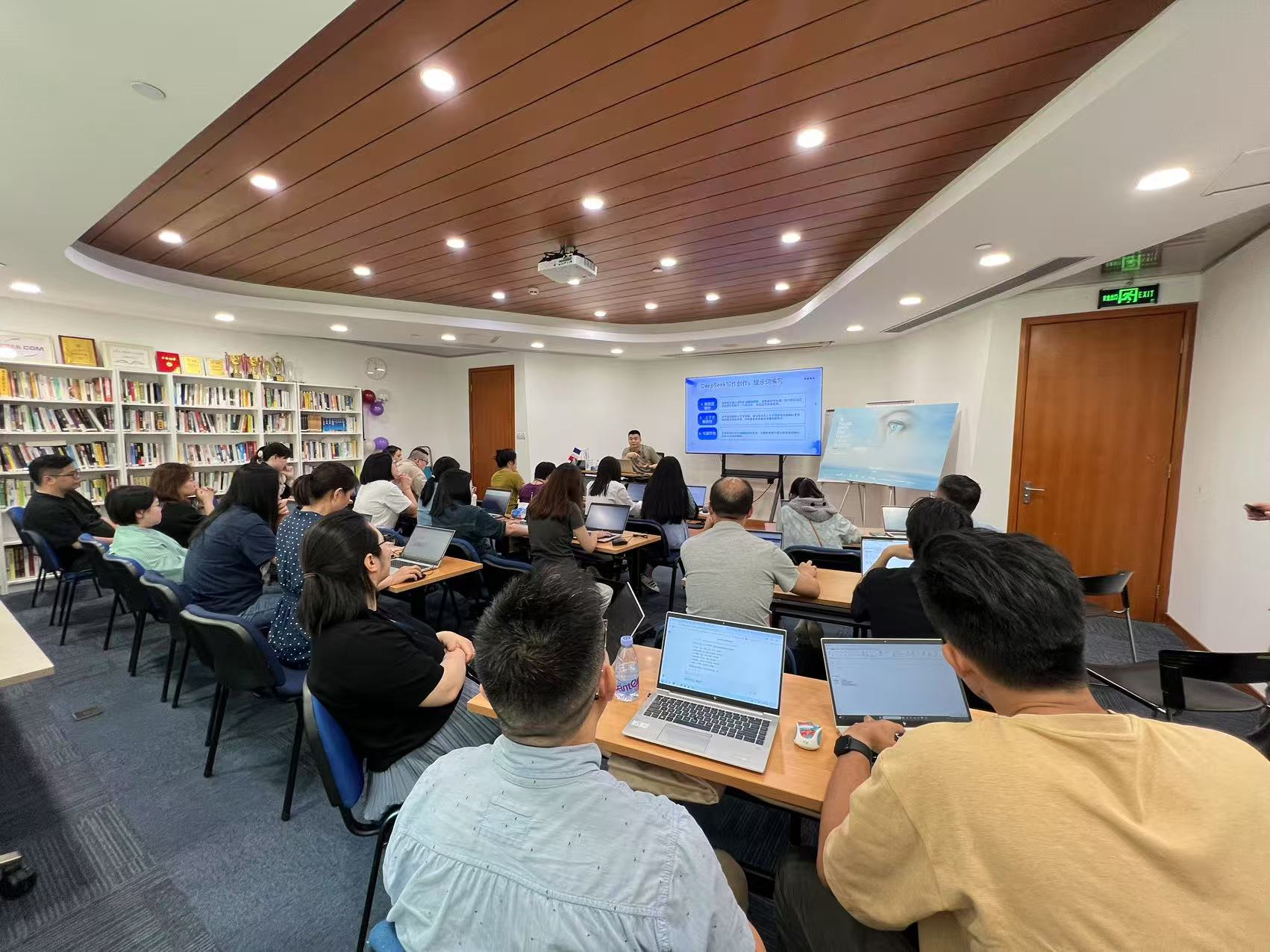 培训现场,深圳开放大学的讲师化身 “数字引路人”,通过生动案例与沉浸式实操演示,详细讲解 DeepSeek、+AI 工具在文档处理、数据分析、项目管理等办公环节的应用技巧。无论是 AI 快速生成会议纪要,还是 DeepSeek 实现数据可视化,每个实用场景教学都引发学员积极响应。业务骨干们认真记录要点,踊跃提问,围绕 AI 指令优化、工具适配等问题热烈探讨。员工小彭表示:“这次培训太及时了!学会用 AI 处理数据报表,至少能节省一半时间。”