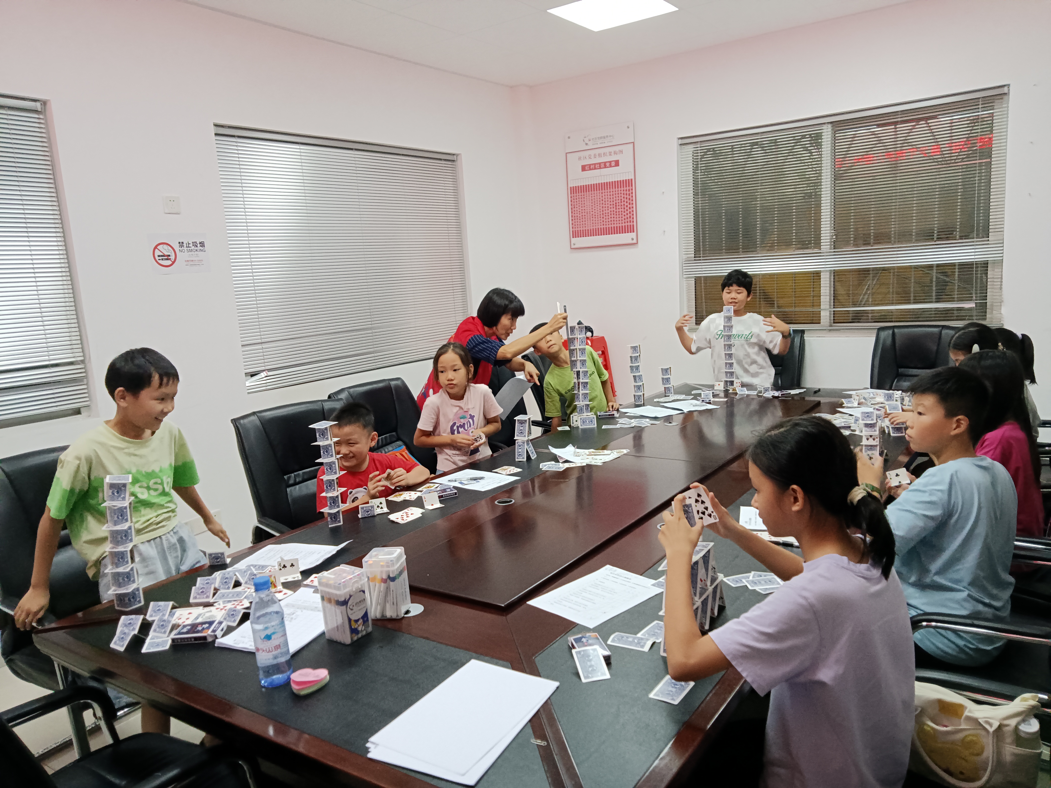 活动高潮出现在“叠纸牌”极限挑战。13岁学员唐明聪精准定位结构薄弱点,独创“三角加固法”,带领团队将纸牌塔筑至89.5厘米——相当于普通课桌高度。其出色表现赢得组员“天才少年”的赞誉,成为活用抗逆力解决难题的生动典范。