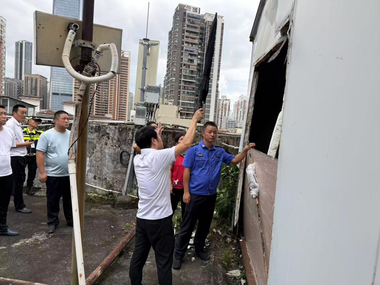 9月23日,为应对台风,社区党委带队,即刻开展安全整治,全面排查户外易坠物、老旧房屋及排水设施,清理杂物保畅通,重点延伸至辖区内的建筑工地、低洼易涝点、户外设施等区域,对存在安全隐患的老旧区域要求加固或者拆除。另外要求施工单位严格落实台风期间安全生产主体责任,必要时停止户外作业,做好人员转移安置准备,严防安全事故发生。