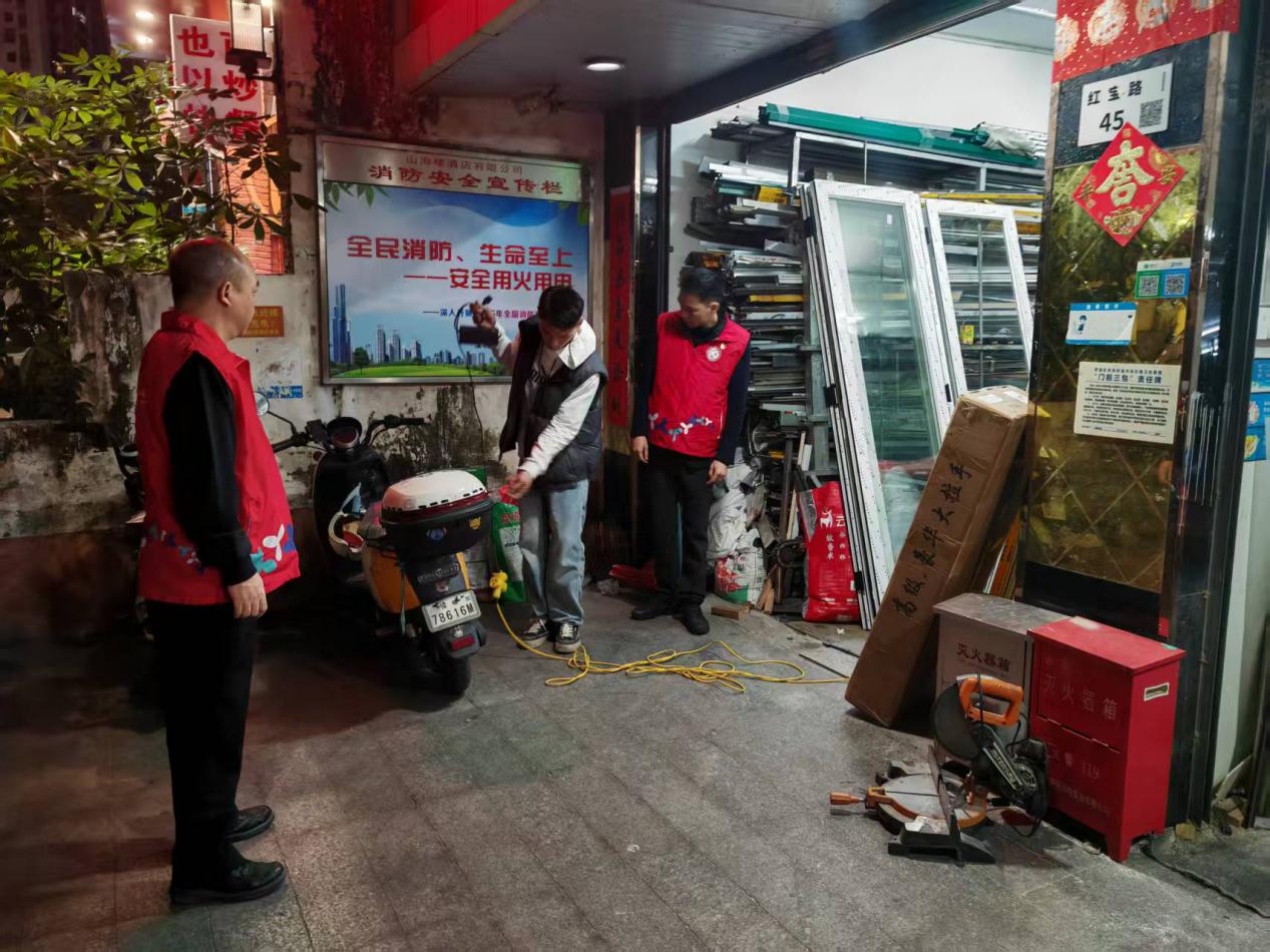 罗湖家园网讯:11月21日晚,红村社区组织工作人员开展消防安全夜查行动,本次夜查行动重点针对“三小”场所、老旧住宅小区、出租屋、酒店等人员密集场所进行排查检查,主要集中排查“三小”场所是否设置简易烟感、是否违规住人、是否存在燃气安全和用电安全隐患;老旧住宅小区是否存在电线乱拉乱接、电动自行车违规停放充电、飞线充电、车辆违规占用消防通道、堵塞安全出口等安全隐患。同时,在检查过程中,对相关场所从业人员及辖区居民进行消防安全、燃气安全、居家安全等方面的知识科普,进一步提升居民群众的消防安全意识。