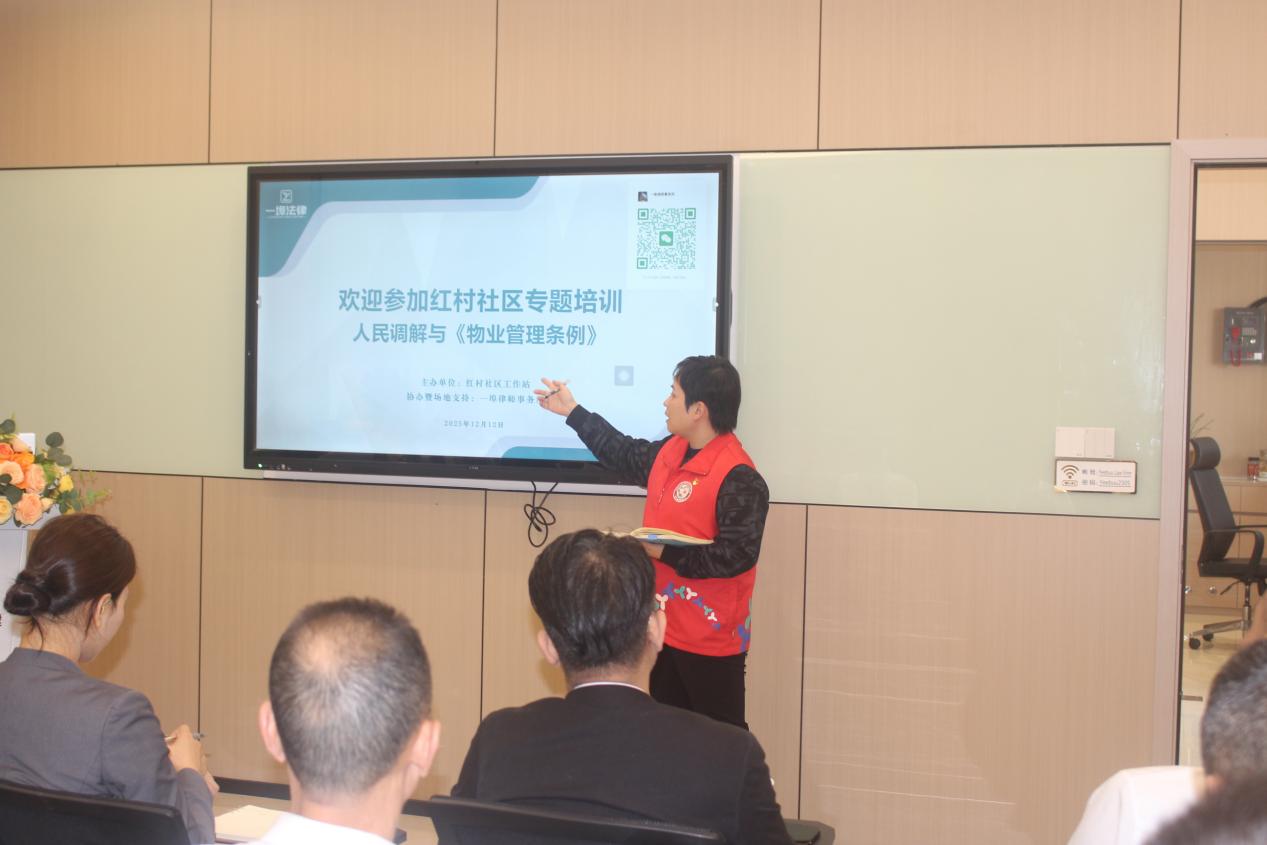 罗湖家园网讯:2025年12月12日,红村社区党委、红村社区党群服务中心携手辖区警务室、一埠律师事务所,在一埠律师事务所活动室成功举办“善治+”社区物业赋能行动专题培训。社区物业代表、调解员等30余人参加活动。