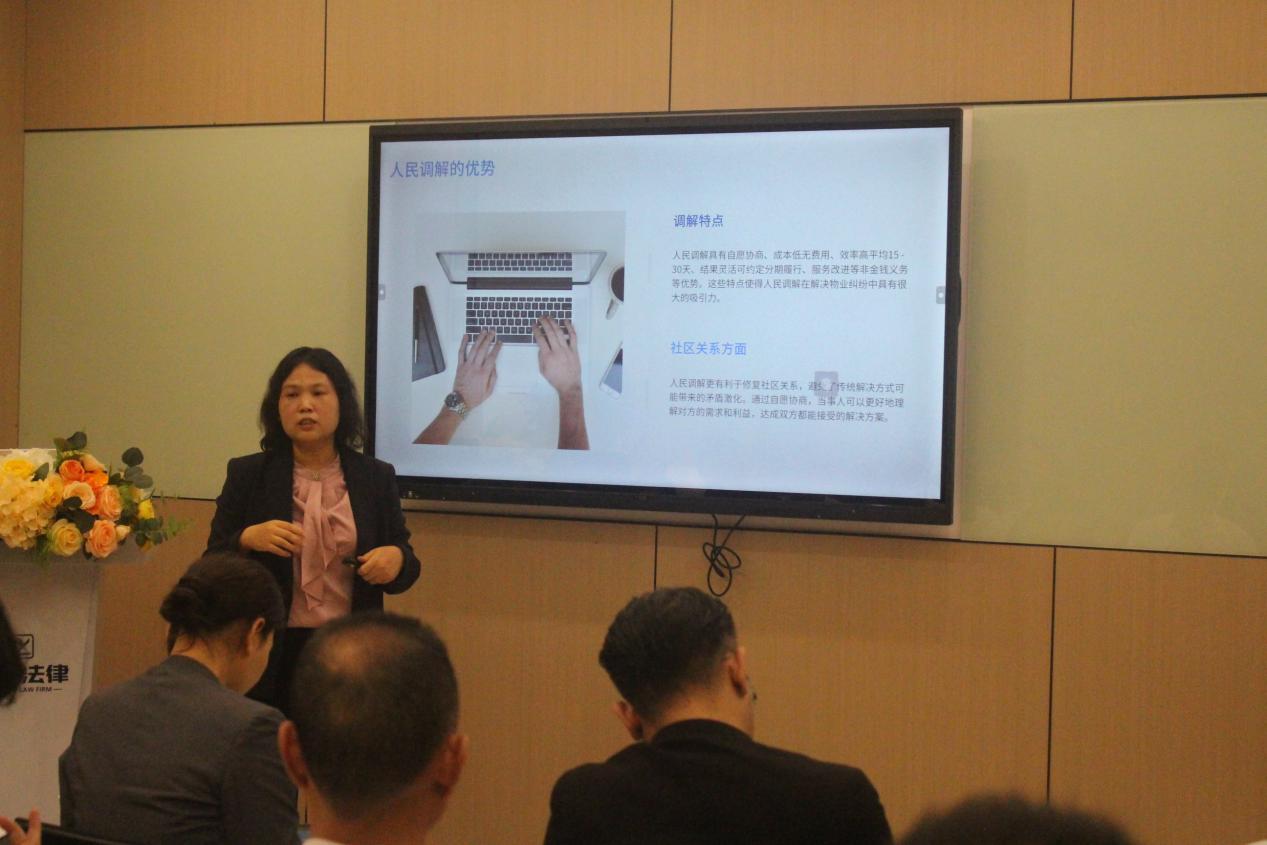 一埠律师事务所蒋昭丽律师围绕“人民调解实务与物业管理条例”主题,通过PPT展示深入解析了人民调解的法律效力与实践要点。针对物业费收缴、公共区域管理等突出问题,蒋律师结合典型案例提出了具体解决方案,为参训人员提供了实用的工作指引。参与培训的物业公司代表纷纷表示收获颇丰。