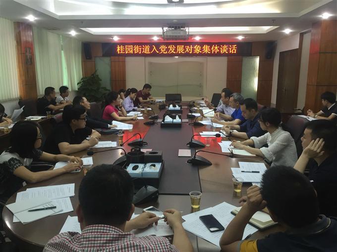 为做好发展党员工作,确保党员发展质量,严格按照党员发展程序,5月26日下午,桂园街道对8名发展对象进行了入党前的集体谈话。会议由桂园街道党群工作部长蔡健飞、街道两新组织书记柳陇川主持。鹿丹村社区党委参加此次会议