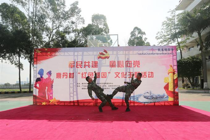 微微笑,小时候的梦我知道……”在阵阵清脆的童声中,近期由鹿丹村社区党委主办,广东省武警边防总队六支队七中队、深圳市滨河小学、新围社区党委、新围社区党群服务中心、深圳市温馨社工服务中心协办的“军民共建,童心向党”----鹿丹村“红色基因”文化主题活动拉开了序幕。