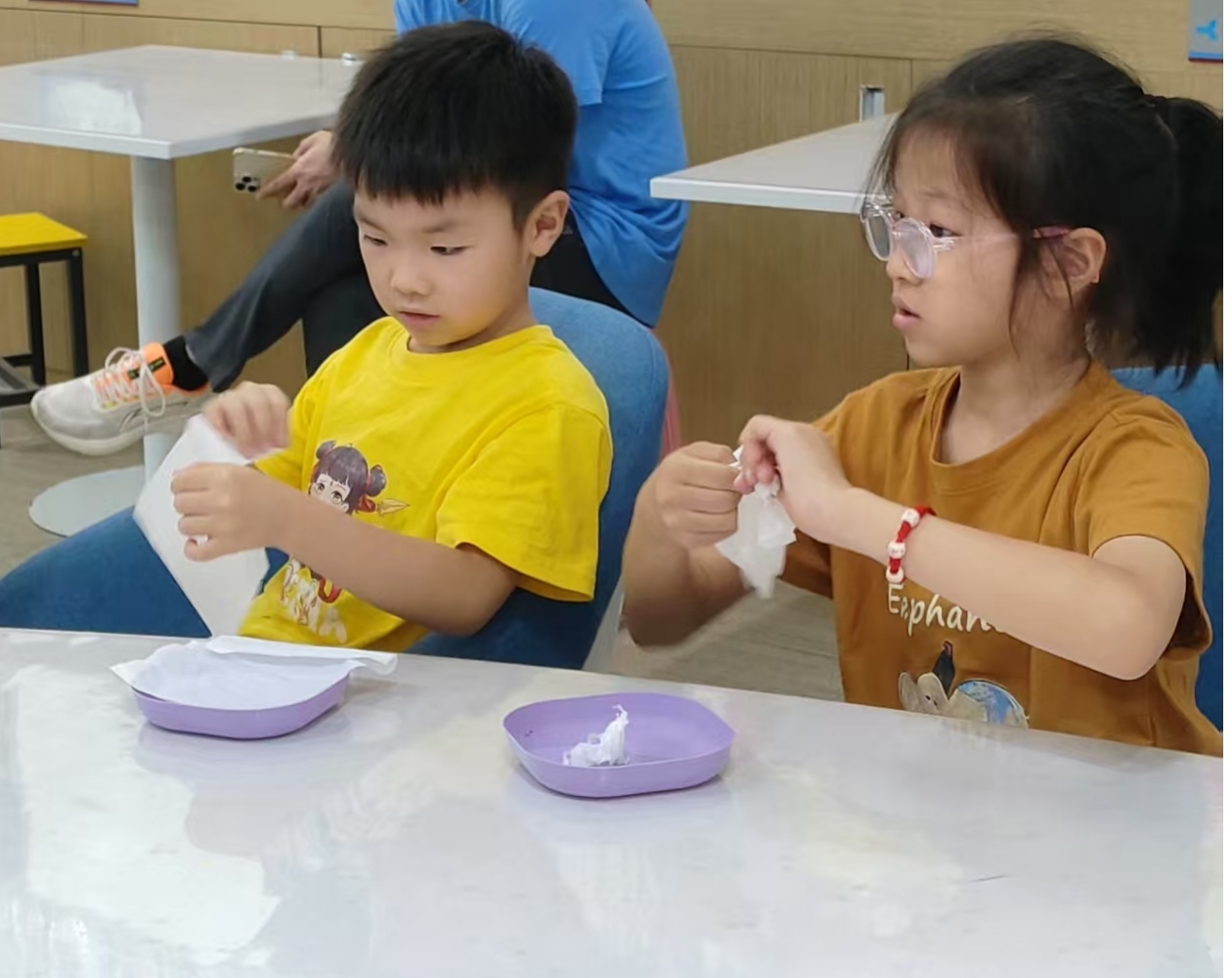 最受期待的科学手工 “静电小实验” 环节,孩子们在家长的协助下,利用塑料吸管、纸巾、毛线等材料,制作出会 “跳舞” 的纸屑、会 “转圈” 的毛线等创意作品。制作过程中,家长耐心引导孩子调整摩擦的方式和力度,孩子们则认真观察实验效果,动手能力和科学思维在实践中得到锻炼。