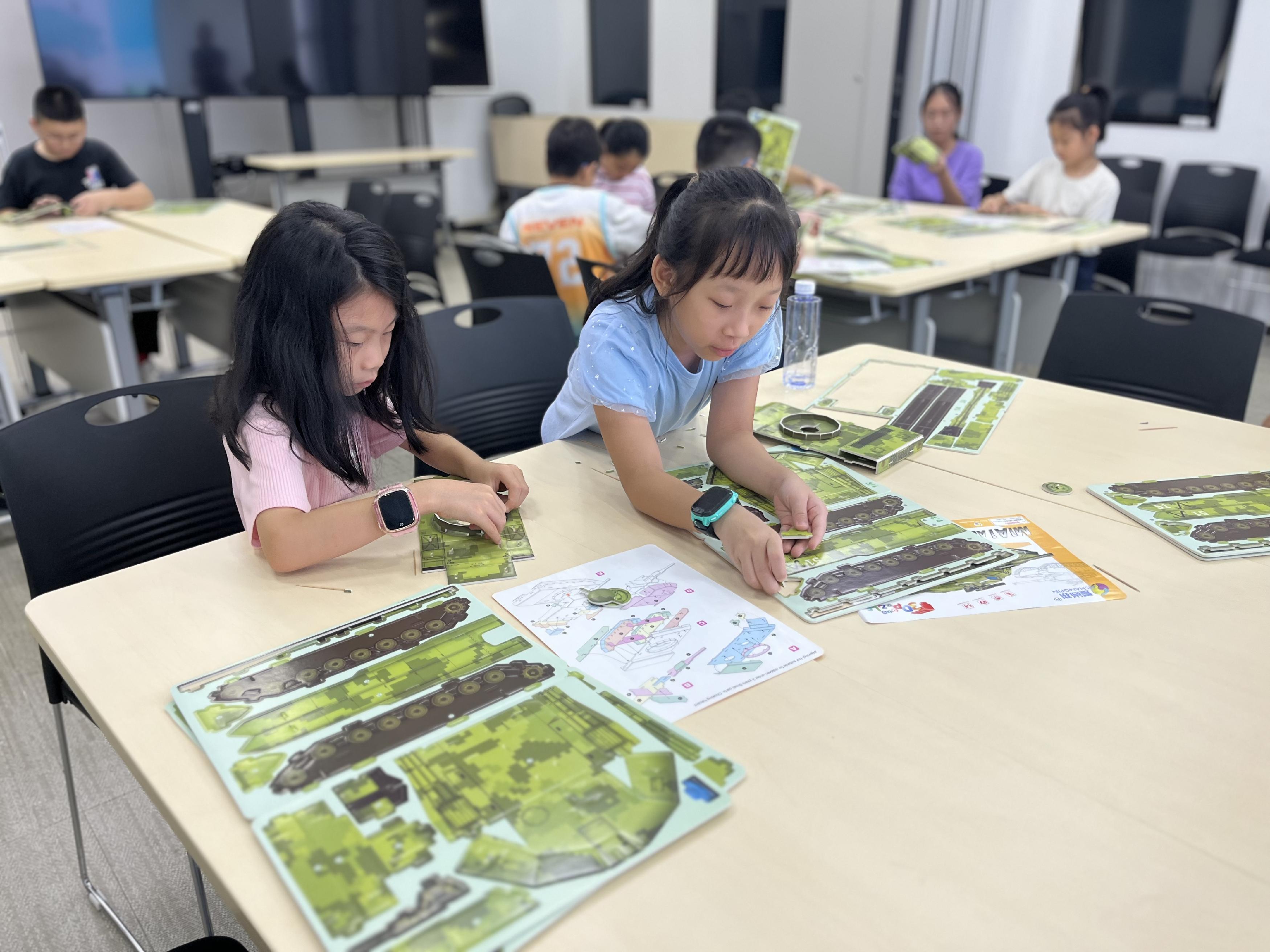 为充实社区青少年暑期精神文化生活,厚植国防情怀,8月27日,鹿丹村社区开展青少年坦克模型制作体验活动。