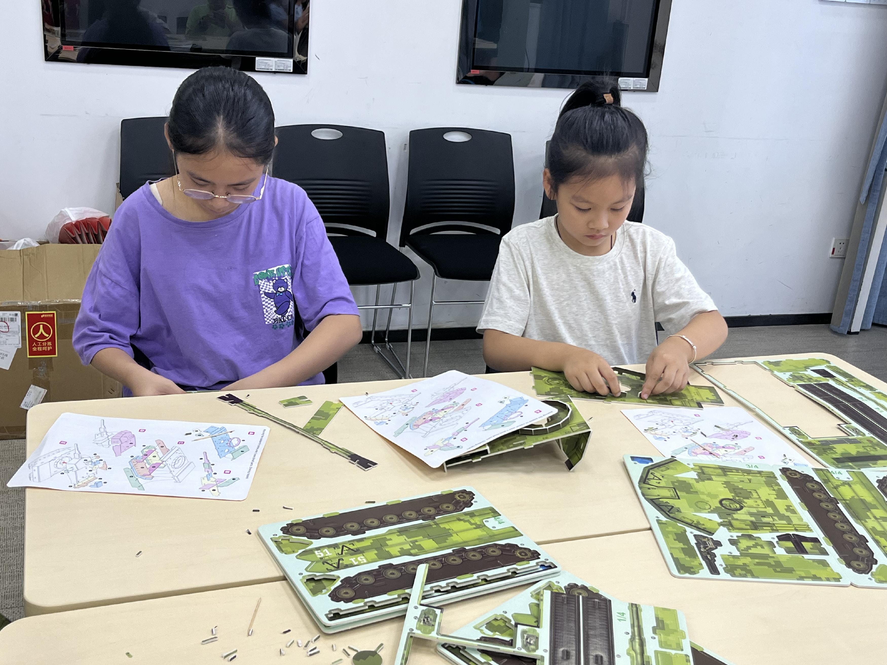 为充实社区青少年暑期精神文化生活,厚植国防情怀,8月27日,鹿丹村社区开展青少年坦克模型制作体验活动。
