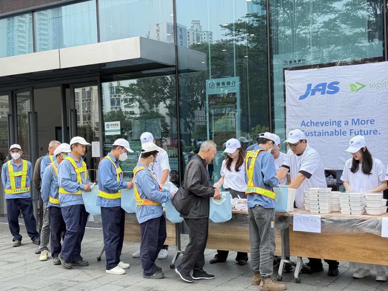 罗湖家园网讯:为深入贯彻落实“百千万工程”决策部署,推动优质服务资源向基层一线下沉,2025年10月29日,鹿丹村社区联合捷爱士国际货物运输代理(上海)有限公司深圳分公司,共同开展了一场爱心送餐活动,为辖区内80余名一线环卫工作者、外卖员、快递员以及防蚊媒消杀工作人员送上热气腾腾的午餐。