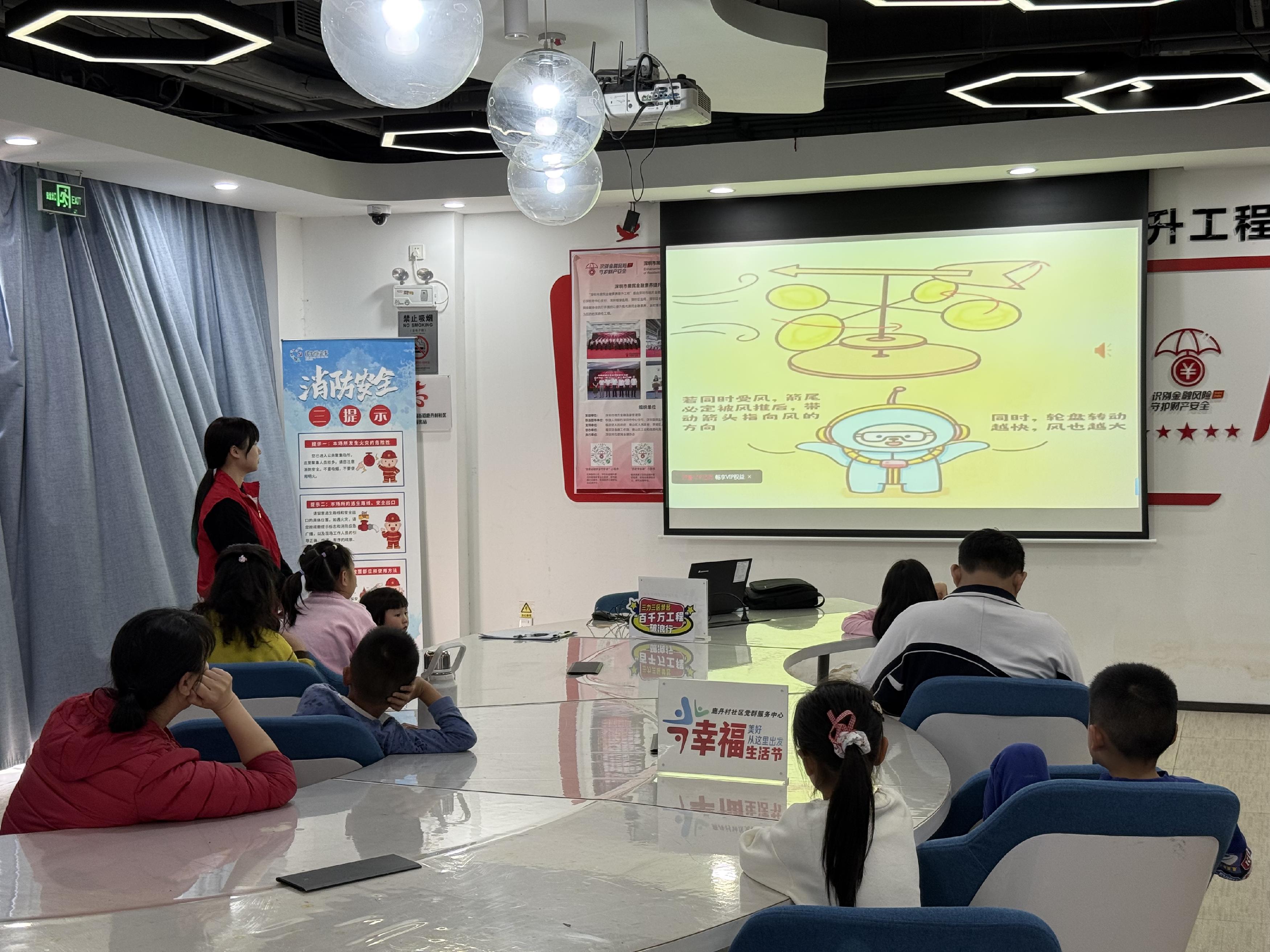 活动伊始,趣味猜谜环节迅速点燃现场氛围。“五个兄弟,住在一起,名字不同,高矮不齐”“屋子方方,有门没窗,屋外热烘,屋里冰霜”等生动有趣的谜语,引发孩子们踊跃抢答,在欢声笑语中活跃了思维。随后,社工通过通俗的语言向孩子们讲解了风的形成原理——太阳辐射不均导致地表气压差异,空气从高压区流向低压区便形成了风,同时地转偏向力和摩擦力还会影响风向与风速。针对核心知识点“风向”,社工特别强调气象上的风向指风的来向,并用“北风从北吹向南、东南风从东南吹向西北”等直观例子帮助孩子们理解。