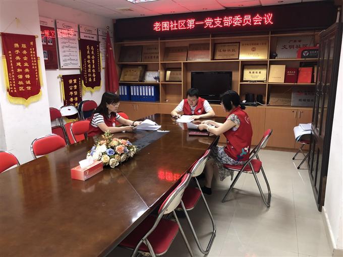 6月22日上午,老围社区党委第一支部委员在社区党员活动室召开会议,会议由支部书记刘剑主持,一支部全体委员参加会议。