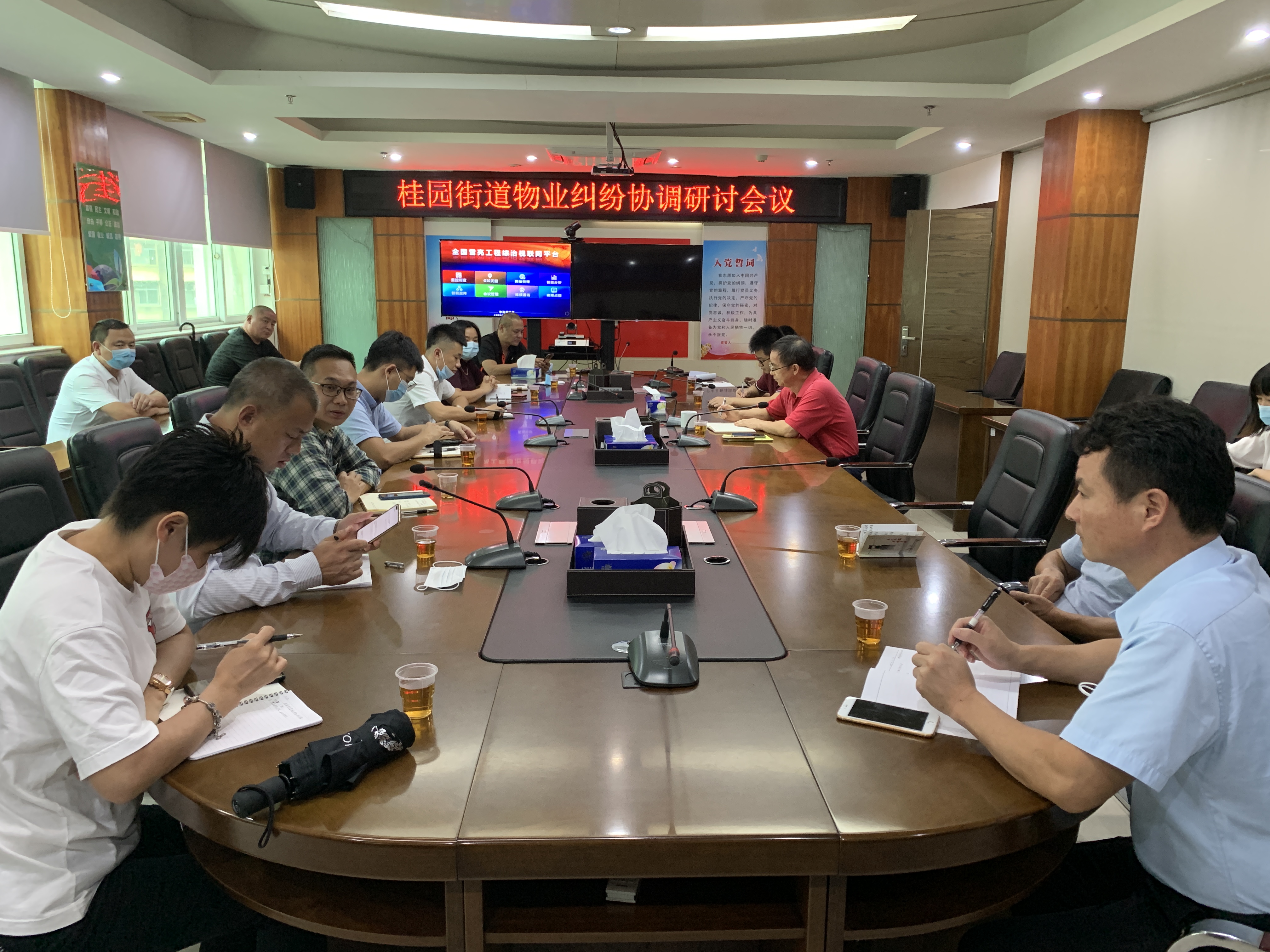 在街道办四楼会议室召开桂园街道物业纠纷协调会议,工作人员参加了会议。