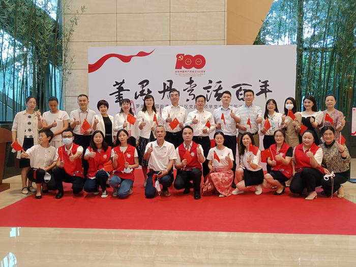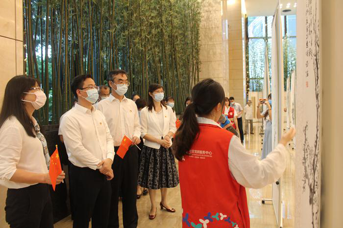 罗湖家园网讯:8月27日上午,在悠扬的古筝声中,"笔墨丹青话百年——罗湖区桂园街道老围社区党建引领学党史庆百年活动"在京基100大厦一楼大堂拉开帷幕,桂园街道党工委书记刘楚文,区统计局党组书记、局长张烽,副局长王云芳,桂园街道党工委委员陈国龙等领导与省、市、区人大代表及社区党员群众一起,通过观赏书画作品,感受百年党史的波澜壮阔。
