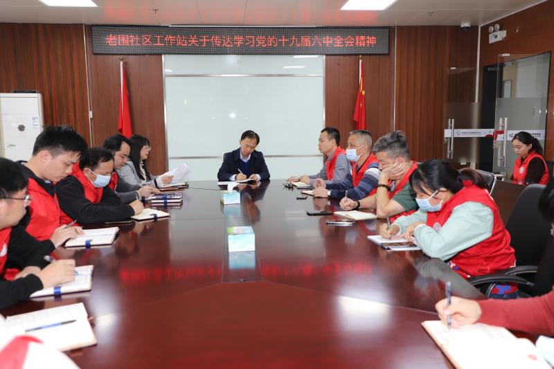 老围社区工作站开展关于传达学习党的十九届六中全会精神的会议