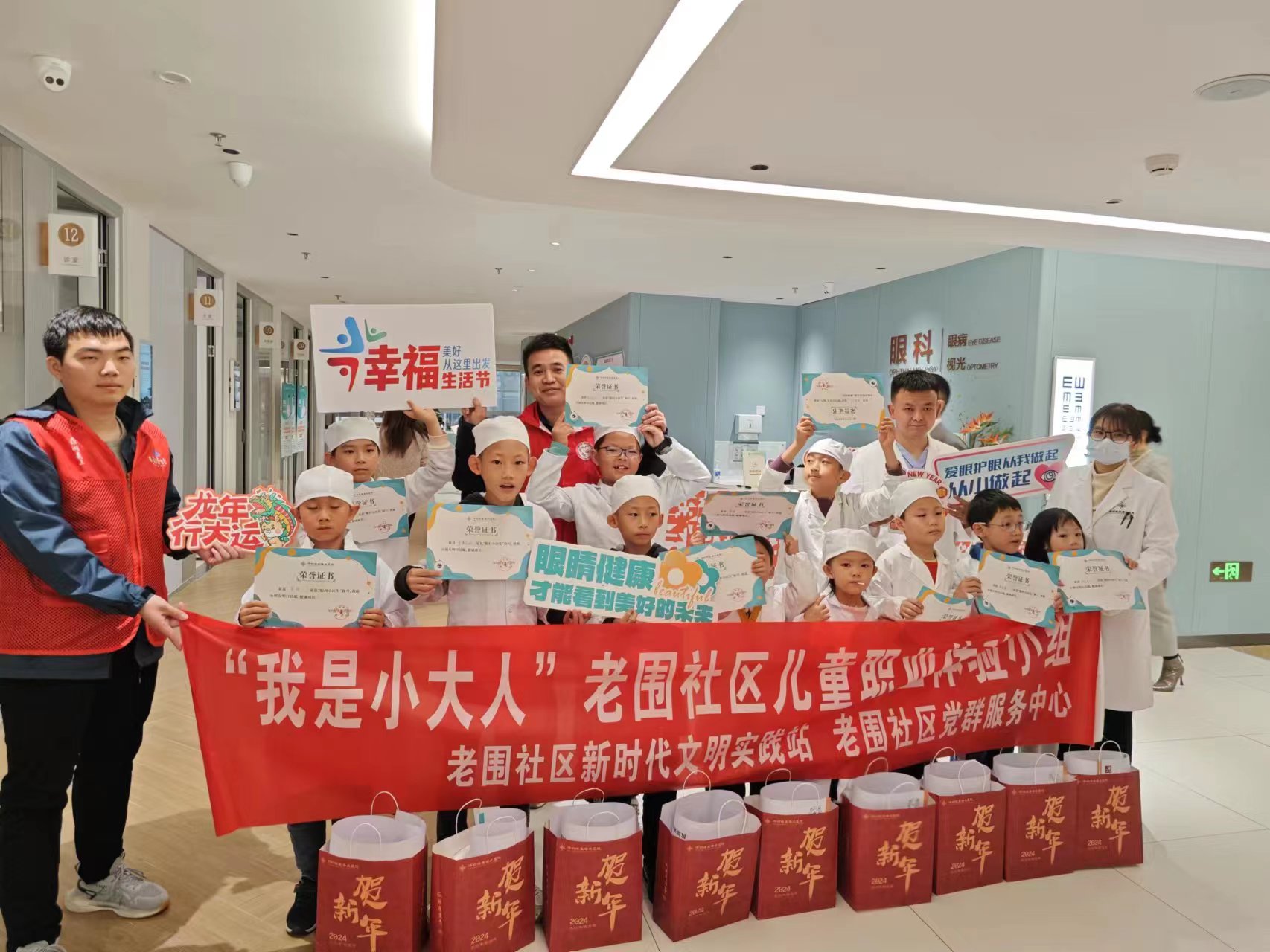 活动结束后,孩子们还获得了医生颁发的“优秀小牙医”、“眼科小医生”结业证书,举着这些证书,孩子们的小脸上洋溢着自豪的笑容,一个个别提有多高兴了!这是一场意义非凡的职业体验之旅,更是一场激发学习热情为孩子们点亮梦想的活动。后续,老围社区党委将进一步营造关心关爱儿童健康成长的良好氛围,继续组织多种多样的儿童职业体验活动,增强他们的幸福感与追求理想的动力。