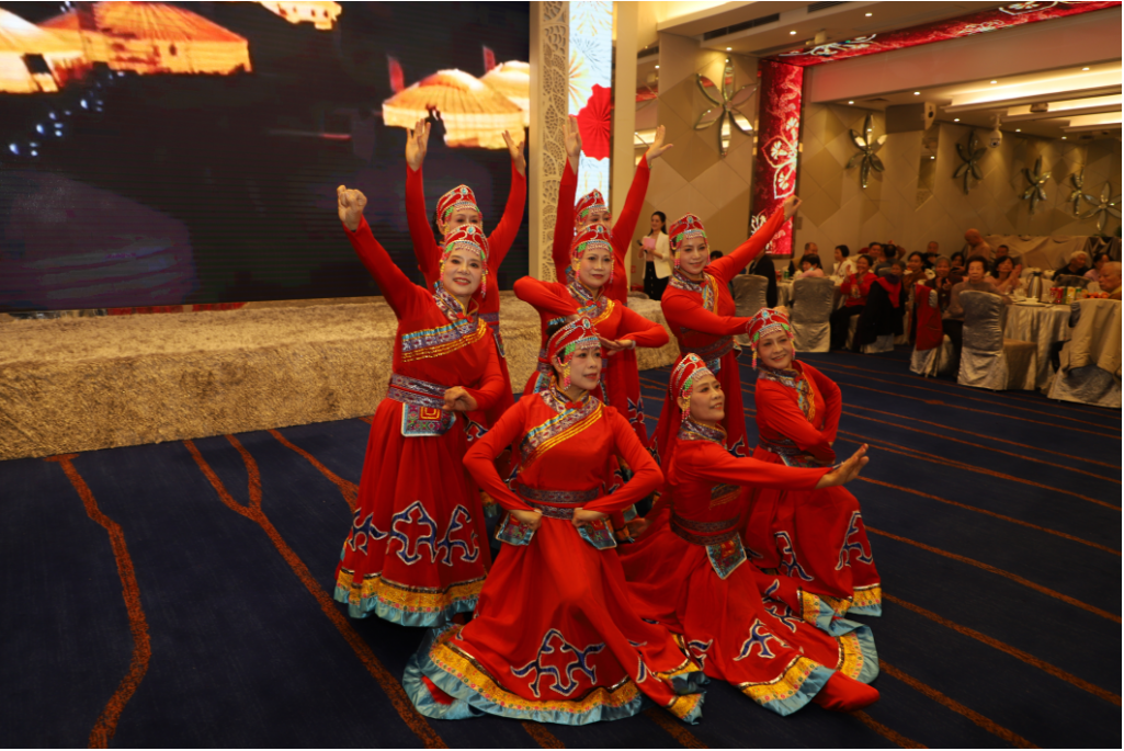 老围社区老协舞蹈队,去年11月份参加罗湖区第十一届“幸福老人”才艺风采展演,表演的蒙古舞蹈《草原花月夜》一举荣获了优胜奖第一名,联欢会当天她们将这个节目呈献给大家,赢得了观众们的欢呼与赞美。为了增加活动气氛,老协舞蹈队员们仅仅用两个下午的时间又排练出了舞蹈《新年好》,她们身着民族服装,手捧鲜红的大灯笼,带领大家提前体验到了新年的欢庆与热闹。现场精彩节目一个接着一个,老人家们个个笑逐颜开,欢欣鼓掌!