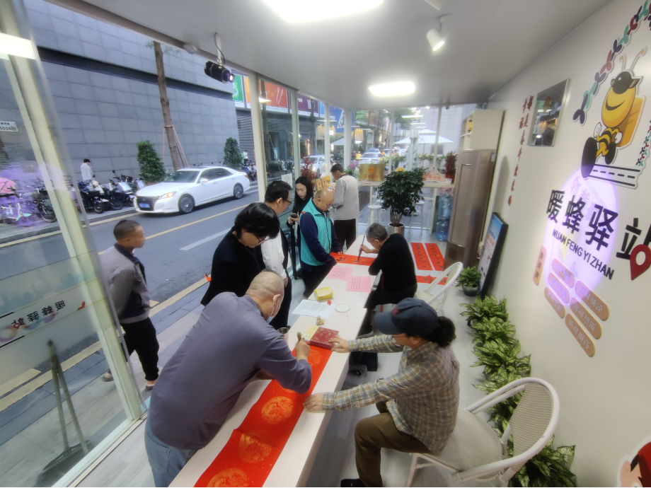 罗湖家园网讯:随着春节的脚步越来越近,老围社区在暖蜂驿站特别策划了一项温馨的送春联活动。这次,志愿者们不仅要将春联送到居民手中,还要现场挥毫泼墨,为大家书写个性化的春联,以此传递节日的祝福和社区的关怀。