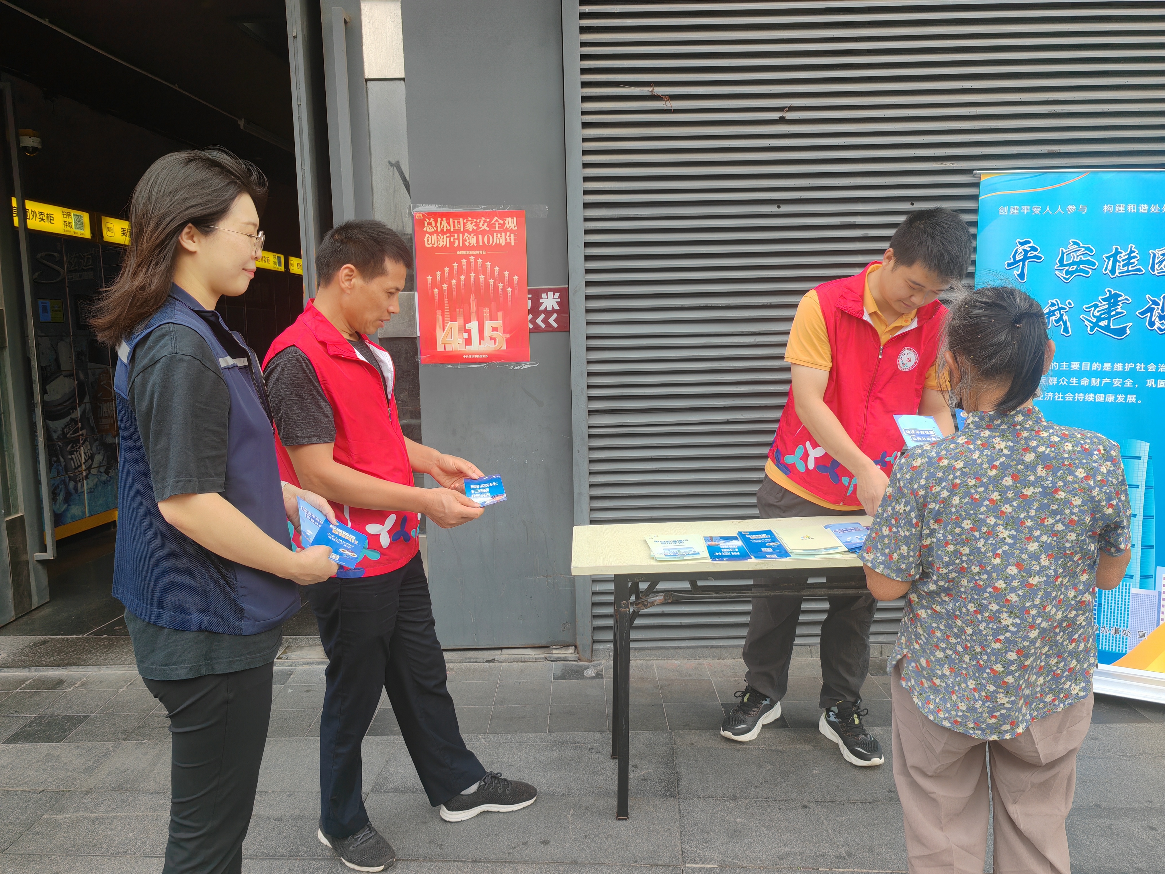 活动中,社区平安志愿者通过宣传条幅,发放宣传资料、现场讲解等方式,向居民群众普及平安创建知识,大力宣传平安建设的意义,提高居民群众对平安知识的了解。