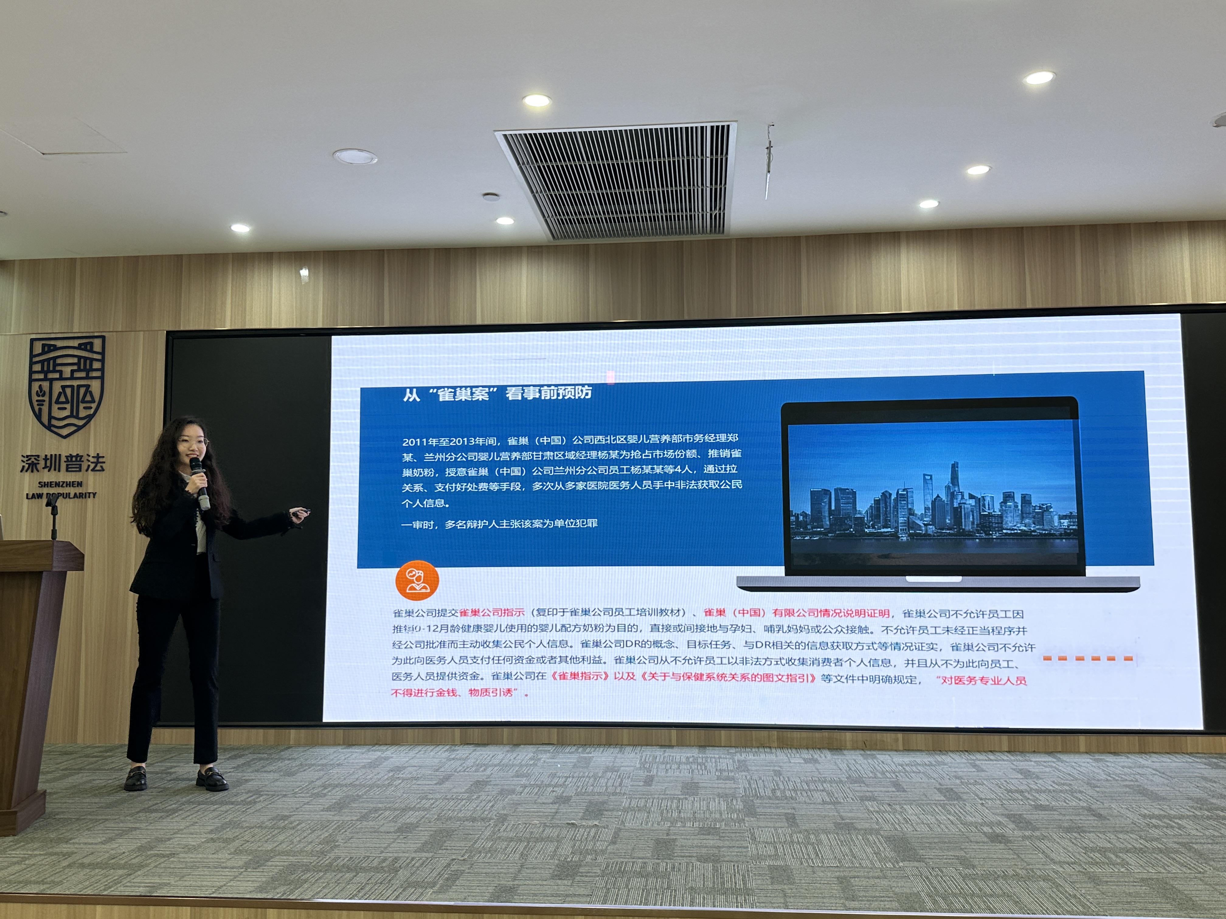 罗湖家园网讯:5月13日下午,国速中心大厦5楼桂园街道新时代文明实践所内,一场关于企业合规主题的普法宣传活动暨桂园街道“法律明白人”培训如火如荼地展开。老围社区的工作人员纷纷到场,他们带着对法律知识的渴望和对社区法治建设的责任感,积极参与了此次培训。活动伊始,主办方为大家播放了一段关于企业合规重要性的视频,通过生动的案例和深入的分析,让在场的工作人员深刻认识到合规经营对于企业发展的关键作用。接着,专业律师从法律法规的角度,详细讲解了企业日常运营中可能遇到的法律问题,并给出了相应的合规建议。